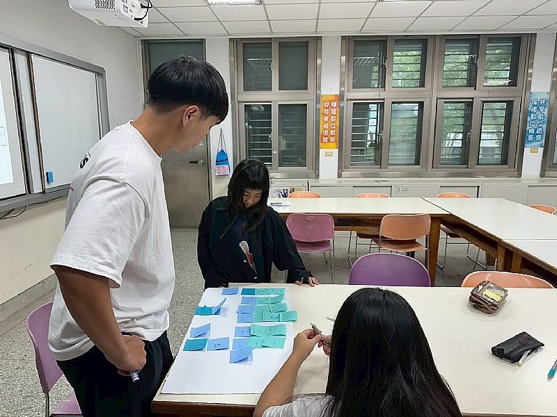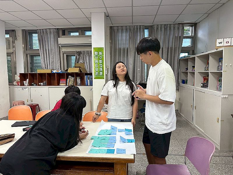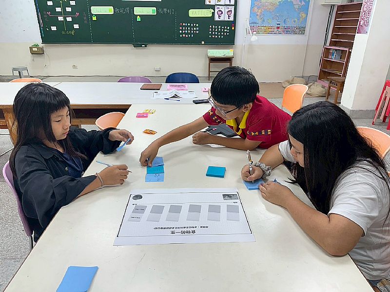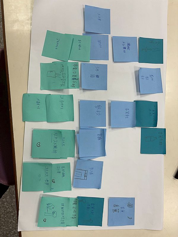 我們是分工合作完成的!有的人負責想點子和討論要寫什麼,有的人負責把點子寫在便利貼上,然後貼到海報上。大家一起幫忙,海報很快就完成了!