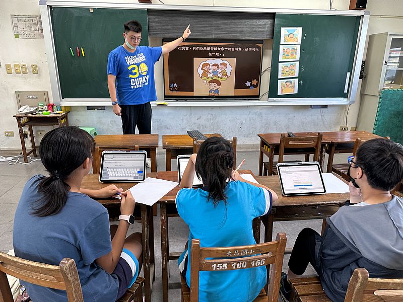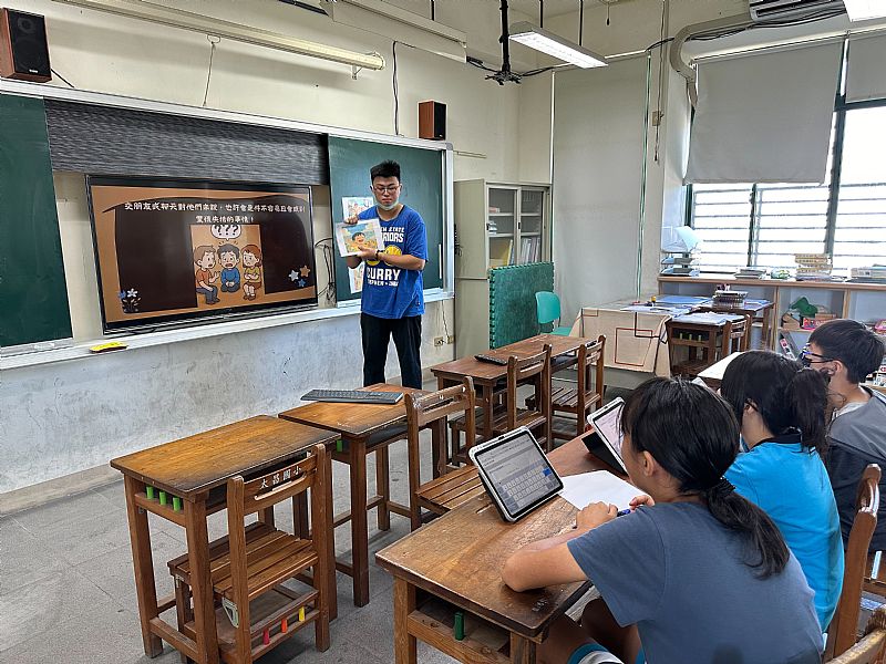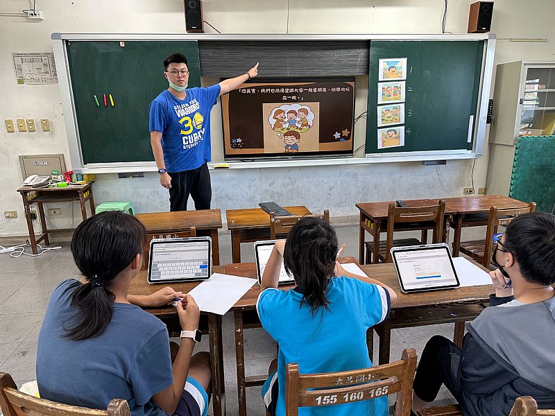 其實去各班做特教宣導之前,我們很緊張,因為其實不知道做什麼事情,我們平時都是坐在底下聽老師們上課,現在突然要我們上去主持活動,我就覺得超級緊張,老師似乎發現我們很緊張,所以在去五年仁班之前我們在資源班教室演練了很多次,冠傑老師也在台上教我們可以怎麼說話、肢體動作,就像上台報告的樣子很像。