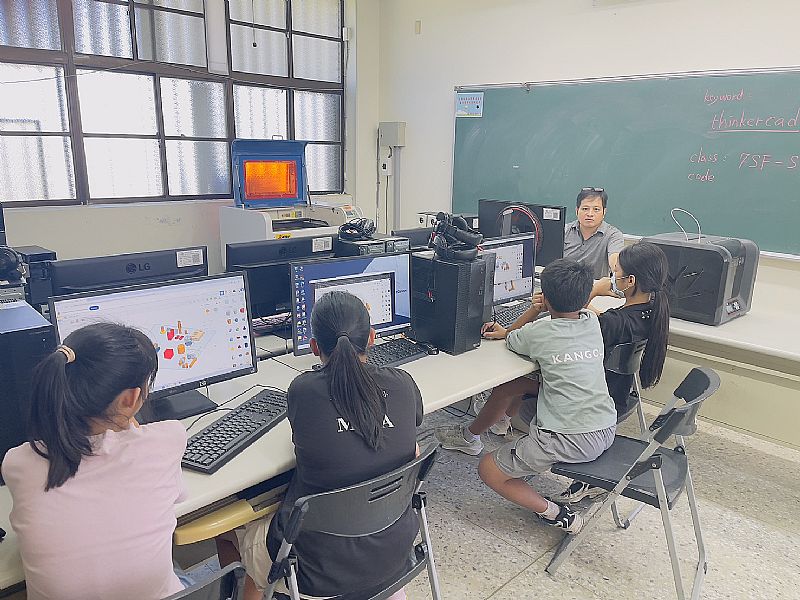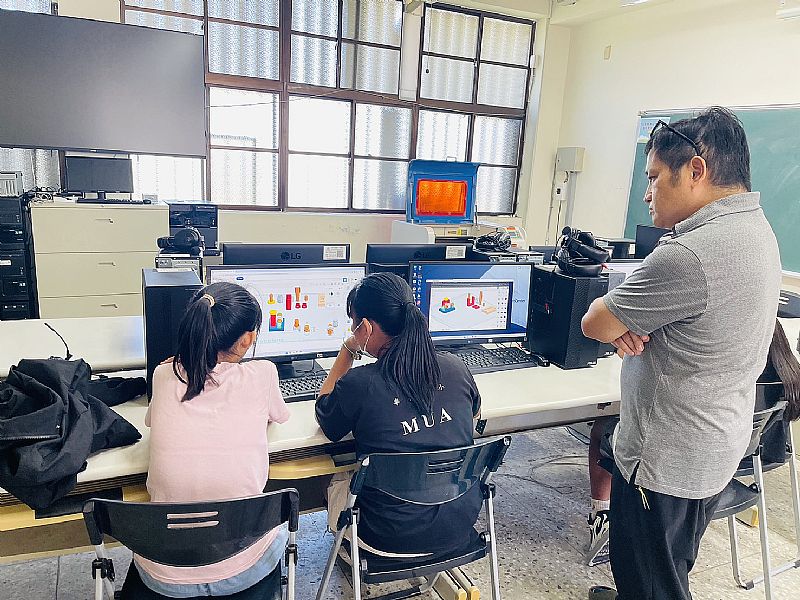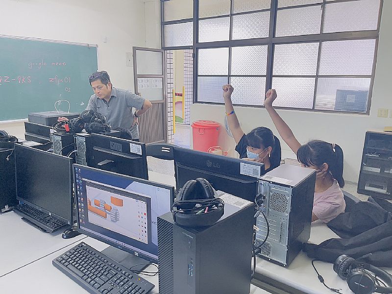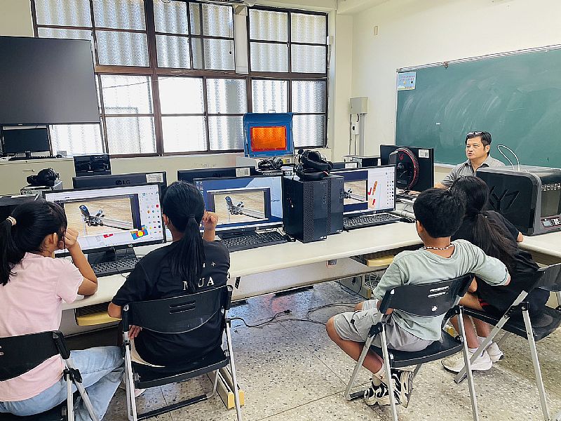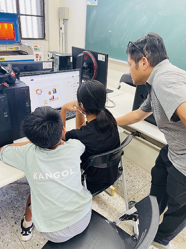 指導老師校長教我們用電腦軟體來設計弓琴的小部件,感覺很特別。一開始老師先打開軟體,教我們如何操作相關功能、轉向、打洞、合併、以及邊長調整、組裝。接下來校長讓我們自己用電腦軟體試著將小零件組裝起來,如果一不仔細小零件就無法很好的組裝。最後,我們把畫好的圖交給雷射切割機,機器就會開始在材料上畫出來。我們看到電腦上的圖變成真小零件時,覺得非常神奇。這堂課讓我學到不只是怎麼做弓琴,也明白了科技可以幫助文化繼續以現代的方式結合然後傳承下去。