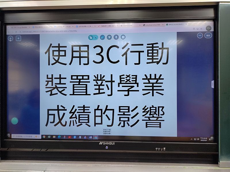 全體學員討論主題,「收看電視的習慣與學習成就的相關性」、「閱讀習慣與成績的相關性」和「使用3C行動裝置對學業成績的影響」,三選一,討論了許久之後,最終選擇「收看電視的習慣與學習成就的相關性」,再次修改題目成「中山國小學生電視觀賞習慣與注意力調查」。