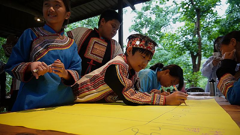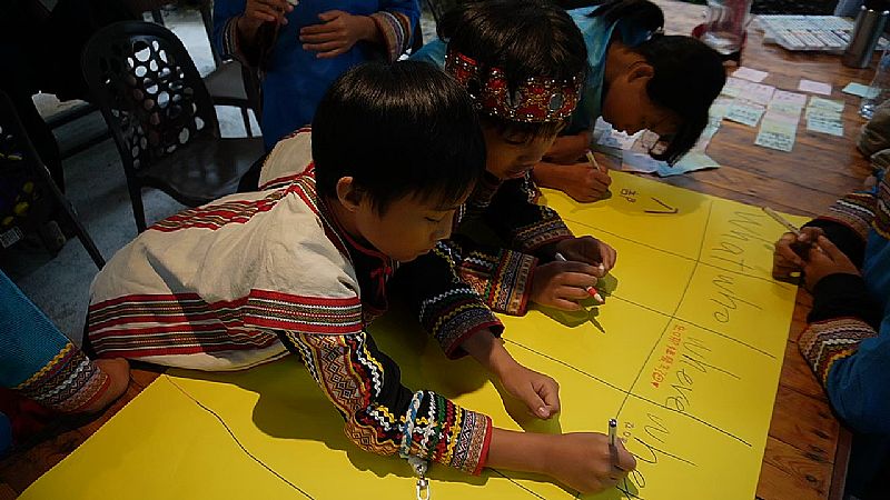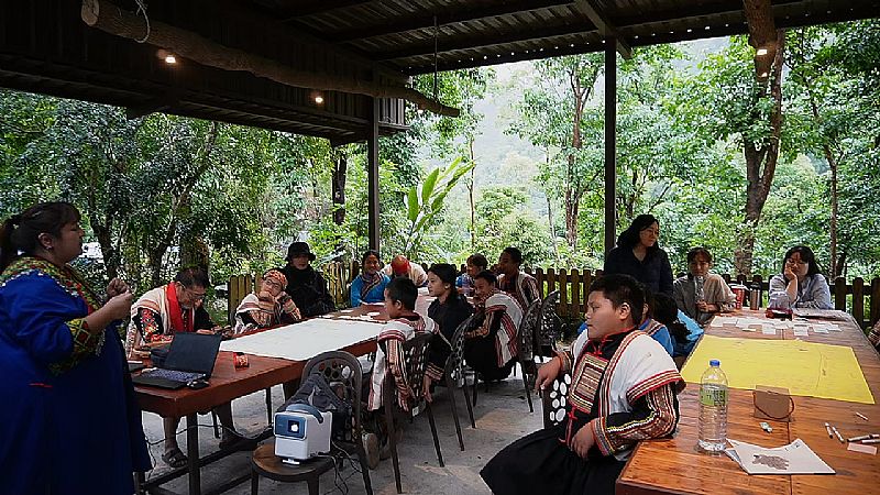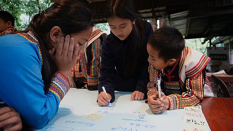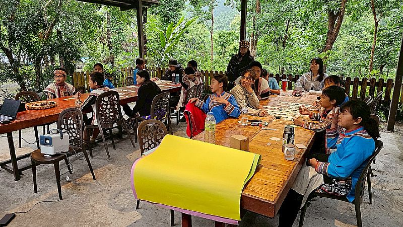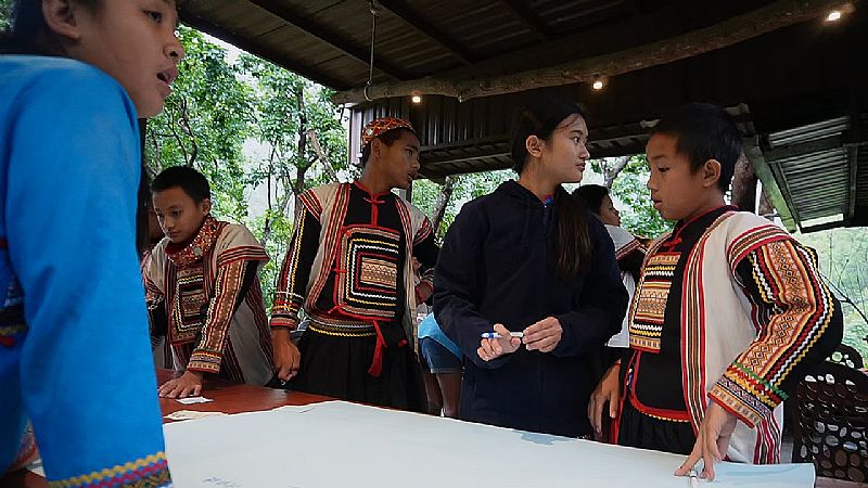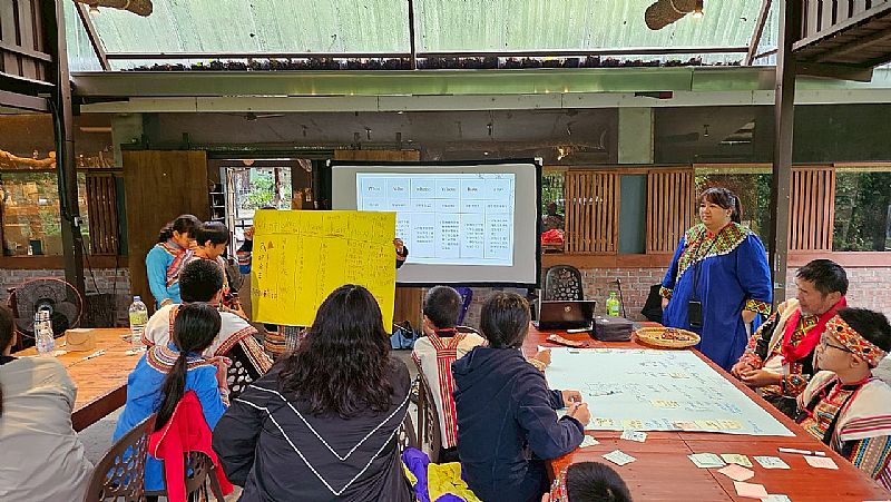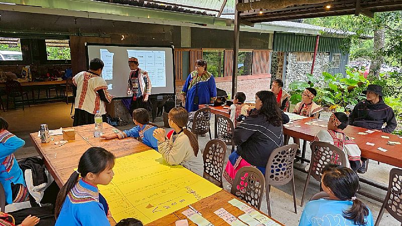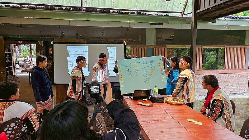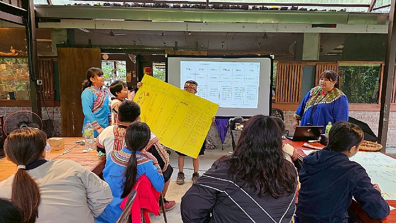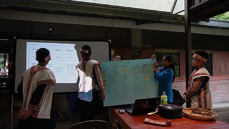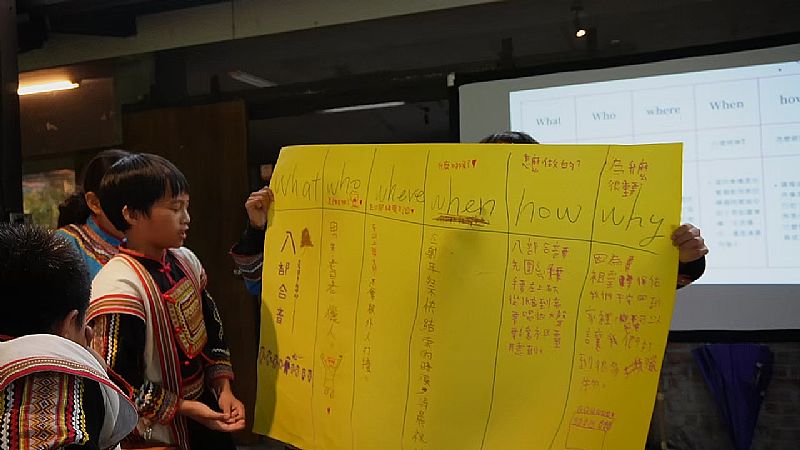 老師運用六何法提問我們,在這兩天學到什麼,我們和部落的長輩一起學習整個射耳祭的流程,將我們討論的內容寫出來,並上台報告。