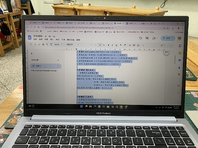 今天我到學校做小論文,因為我上次做的花蓮政府補助表格一次佔了很多頁,所以我把它改成文字的分成住宿補助以過期、還沒過期;交通補助以過期、還沒過期,比較不會佔頁數,還有做研究流程,研究流程我是用canva做,我原本是用透下載,但是我的word檔是黑色的,所以在截圖時,圖片會變成黑色的,就會看起來很奇怪,後來在下載的時候,用不透明的,就不會有的問題。