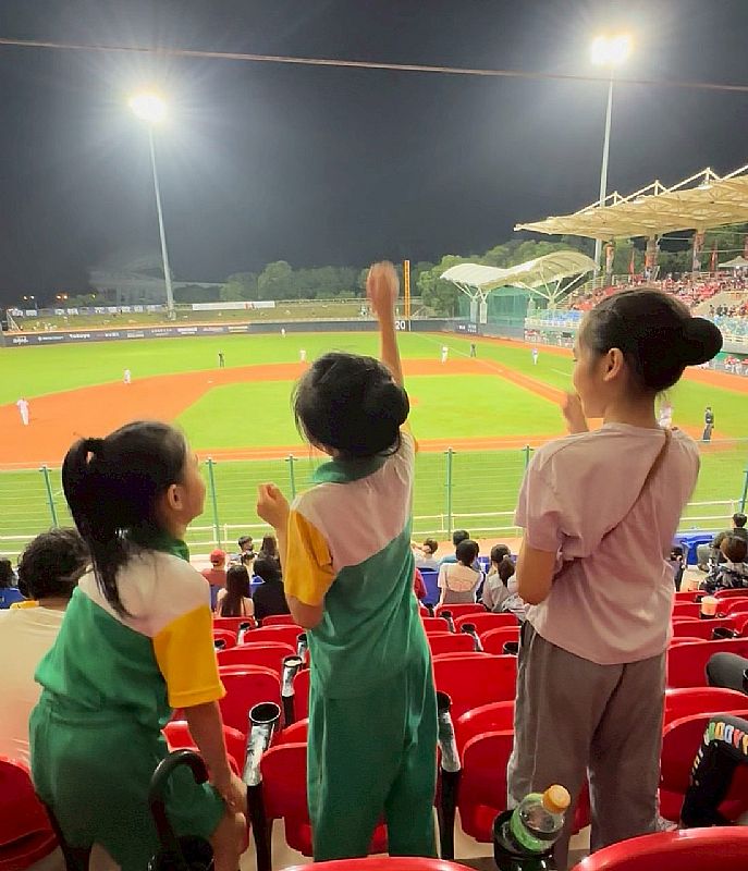 平日爸爸會看球賽轉播,這次為了小論文,學長的爸爸湊了八張票,我爸爸其他家長紛紛出動我們一夥人耗耗盪盪在現場觀賽,爸爸和組員俐均一邊觀賽一邊解釋,看著看著我們居然被轉播拍到三次還是四次呢,電視牆出現我們跳舞加油的畫面,一百年前能高團出征日本沒有影像,只能靠radio轉播,報紙文字報導,我們竟然能一邊欣賞啦啦隊跳舞、一邊逛美食小攤,順便看球賽,非常幸運出生在當代呀。
