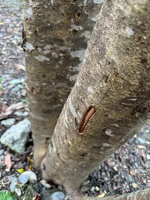 週末,爸爸帶我去松園別館觀察獨角仙留下的咬痕。我們想知道獨角仙怎麼吃東西,也想了解它們的生活。到了松園別館,爸爸教我怎麼看樹幹上的咬痕,那是獨角仙用嘴巴咬出來的。我也發現樹皮上有很多不規則的咬痕,還看到獨角仙的糞便,證明牠們曾經在這裡。爸爸說,獨角仙多數在傍晚出現,喜歡在有傷口的樹上找食物。