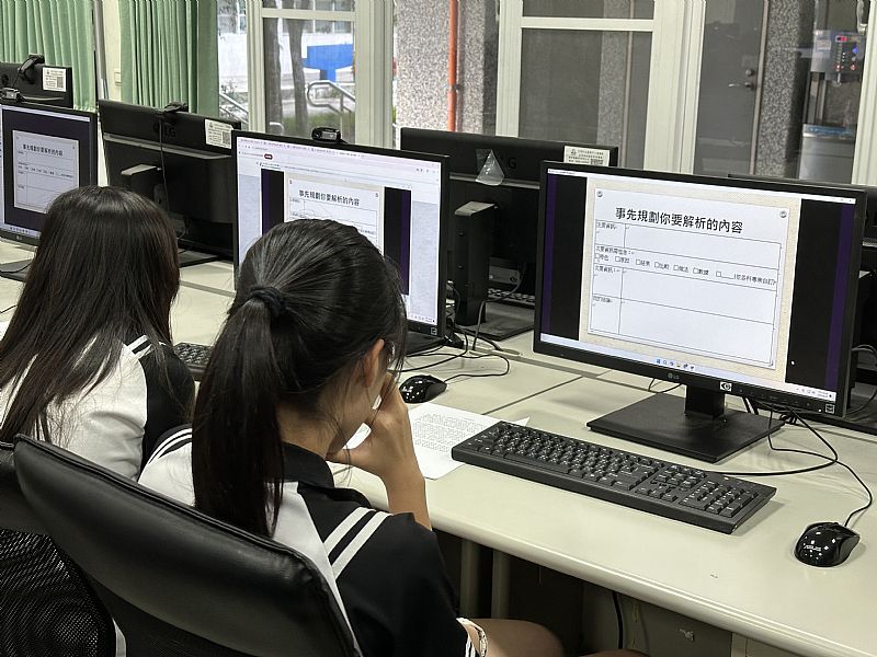 這張照片,定格了我們仔細聽著老師講解研究步驟的一幕。隨著課程的進行和老師的指導,我和組員們在摸索「小迷信」這個神秘又深植人心的主題的路上,步伐逐漸穩健。老師教授了製作小論文的步驟、尋找可信的文獻和網站、撰寫時的格式、專業精闢的詞彙和句式、設計問卷的訣竅等。我初次親身踏入小論文這個充滿汗水的研究之旅,沒有任何經驗,但在一步一步跟著老師同學學習與成長的過程,前方的路彷彿被照亮了,而路途中我們揮灑汗水,也一直在進步。路途遙遙,我們始終相信路的盡頭,是小迷信的真諦,更是代表我們一路的努力與成長的證明。每週四、五下午,我和組員總是匆匆趕到電腦教室,迫不及待的繼續向目標邁進。上課時,我們一邊目不轉睛的注視著教學簡報,一邊認真傾聽,也不忘隨時將重點筆記,牢牢記住。雖然過程有過疲累與艱辛,但是我們彼此之間會互相鼓勵打氣,持續燃燒著對這場小迷信研究的熱忱火焰。