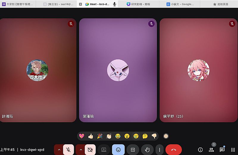 我們三位組員於8月18日早上9點45分進行視訊討論
