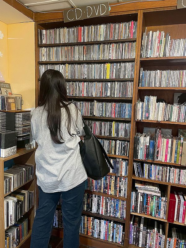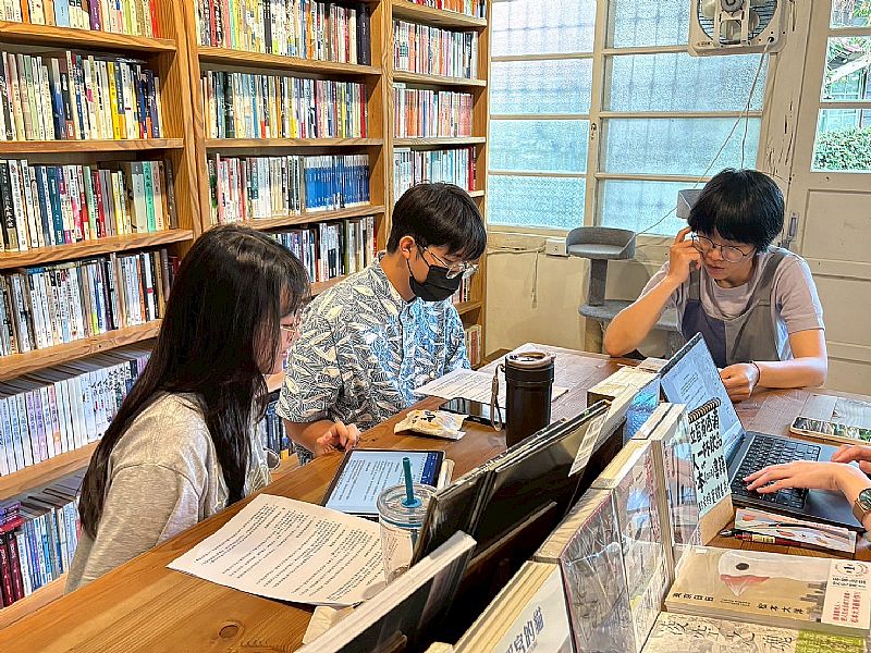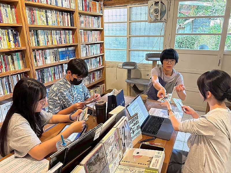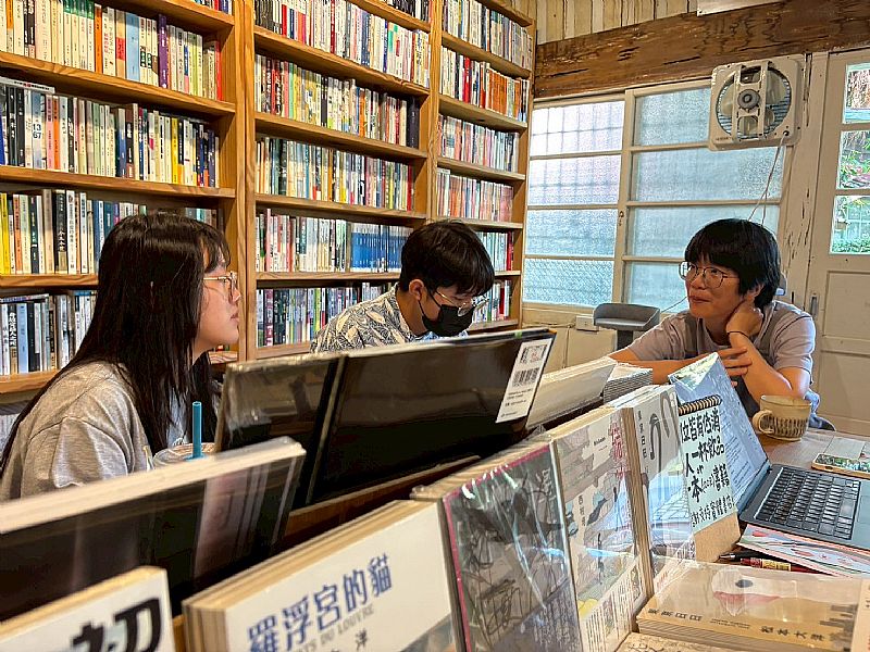 進到書店,琳瑯滿目的是成牆成堆的書,主題跨越文學、藝術、歷史、童書,此行的目的是為了瞭解時光二手書店的經營模式以及業者的心路歷程,以便比較個別書店之間的差異。過程中,同學們輪流提問,而店長小美提供了非常多寶貴經驗。