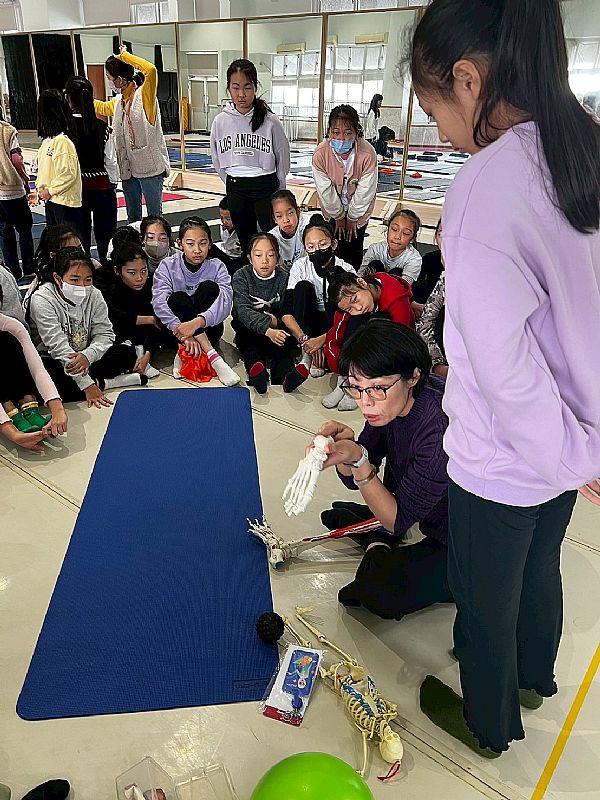 這是我們在聽運動傷害講座和觀看老師示範的照片,老師也有讓我們實際操作,讓我們改掉壞習慣,有來幫我們調整位置,怕我們做錯,所以找人示範,老師一個一個回答我們有的錯誤姿勢問題,比如:骨盆前傾、肋骨收不起等,這次的講座,幫助了我們不少的壞習慣。