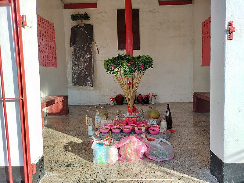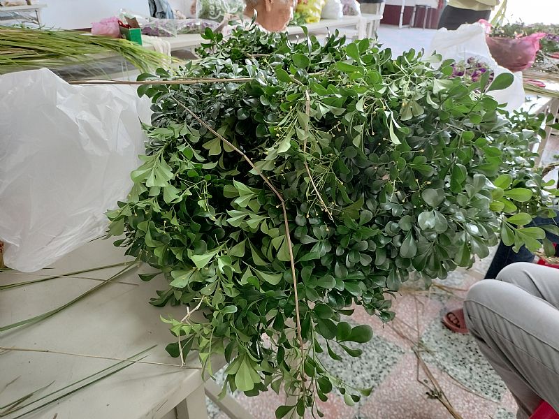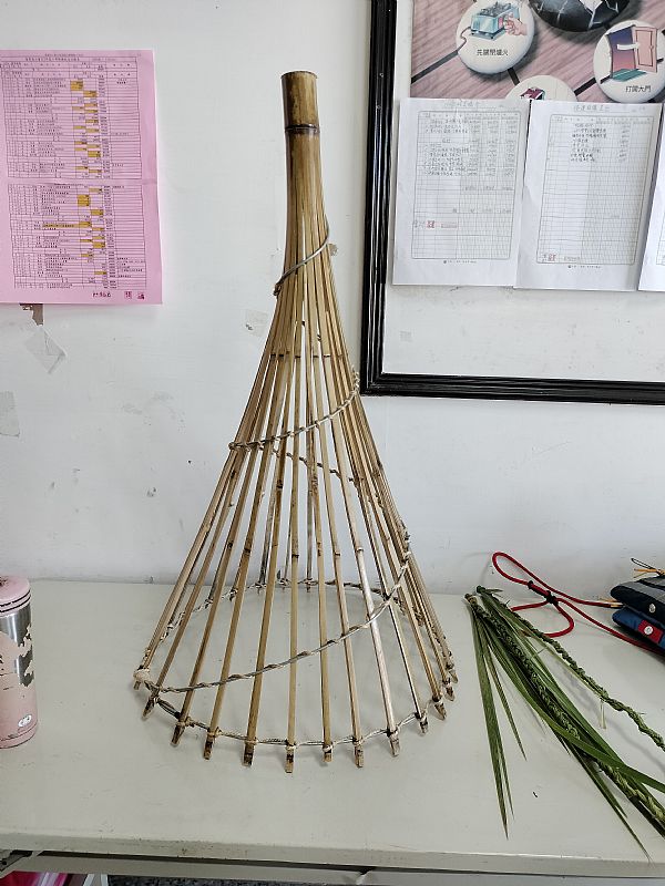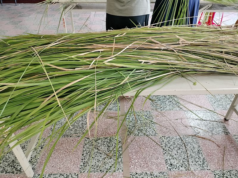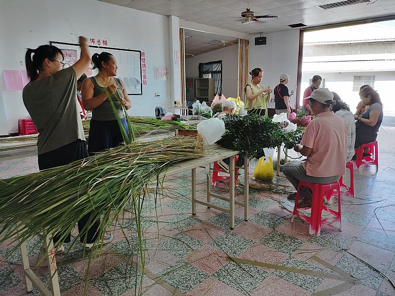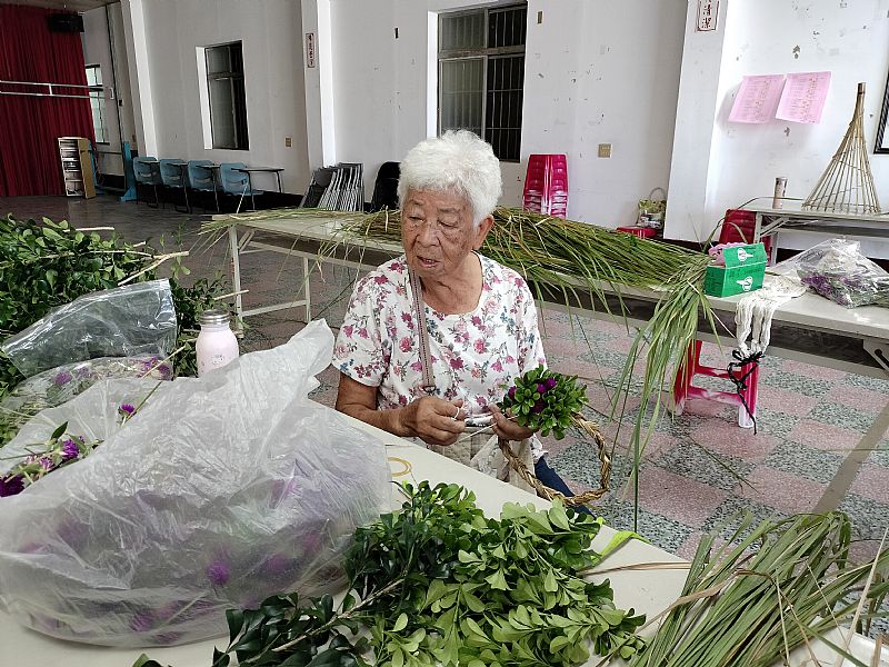 製作花環的植物包括白茅、千日紅與樹蘭,向神座則為長枝竹製作。