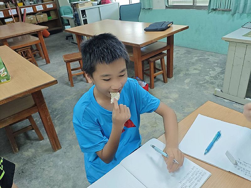 今天老師帶了很多米的食品來跟我們分