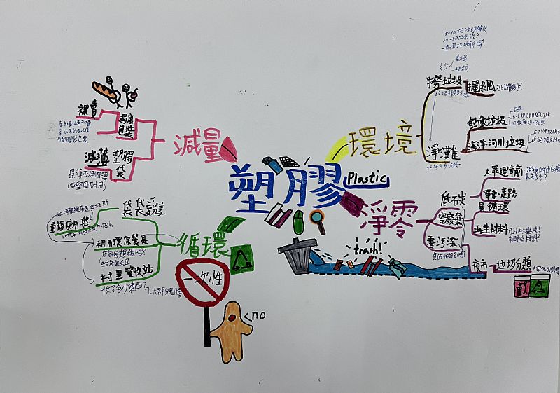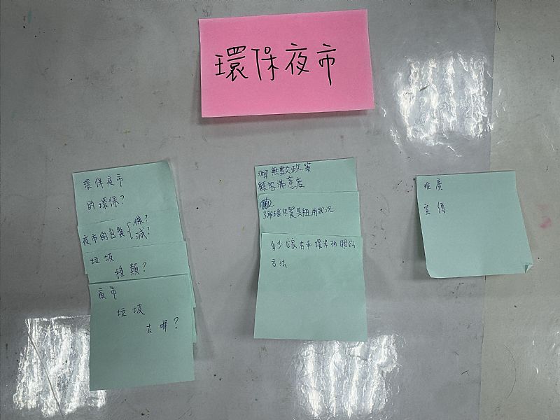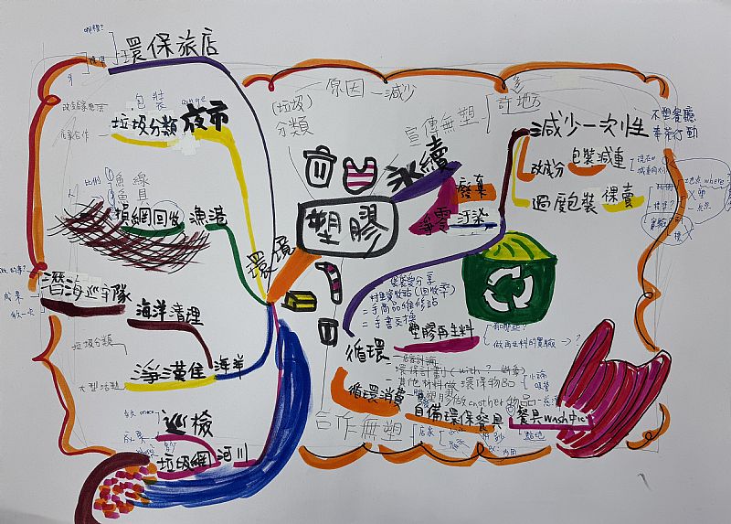三、內容:透過便貼將每個人的想法記錄下來,將主題延伸,再透過心智圖、樹狀圖整理,列出研究細項,最後透過投票決定主題。