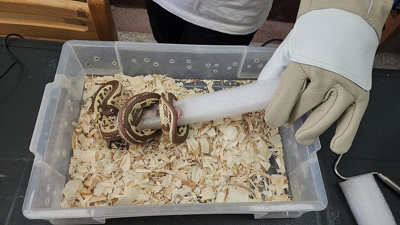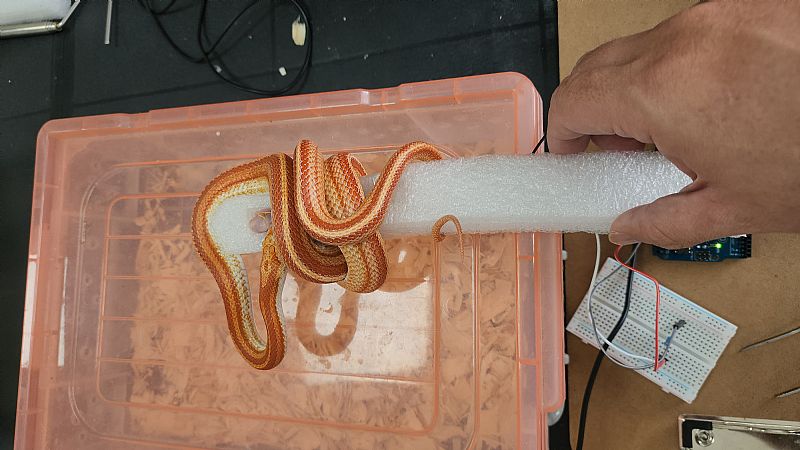 我們一開始想用野生蛇來做實驗,可是遇到很多困難。後來就決定把野生蛇和圈養蛇都拿來測試。結果發現,野生蛇很怕人,幾乎不會去吃東西,但圈養蛇已經習慣了人工環境,比較敢獵食。
