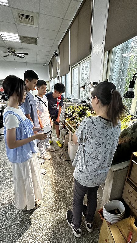 我們到花蓮高農園藝科詢問園藝科老師平時種植花草樹木會遇到的病蟲害問題,還有平時用什麼方法加強對植物的照顧。聽完老師的經驗分享,我們發現給植物光源是很重要的照顧方式。