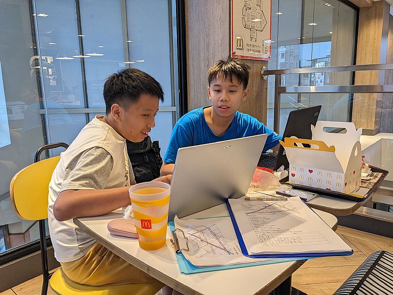 我們去完金三角踏查後,我們到麥當勞討論了我們紀錄的踏查記錄。還有確認scratch遊戲有沒有bug。發現竟然有一個很嚴重的bug!那時我們很急,因為在過兩到三天就要給七年級的看了!幸好最後我們處理好了!