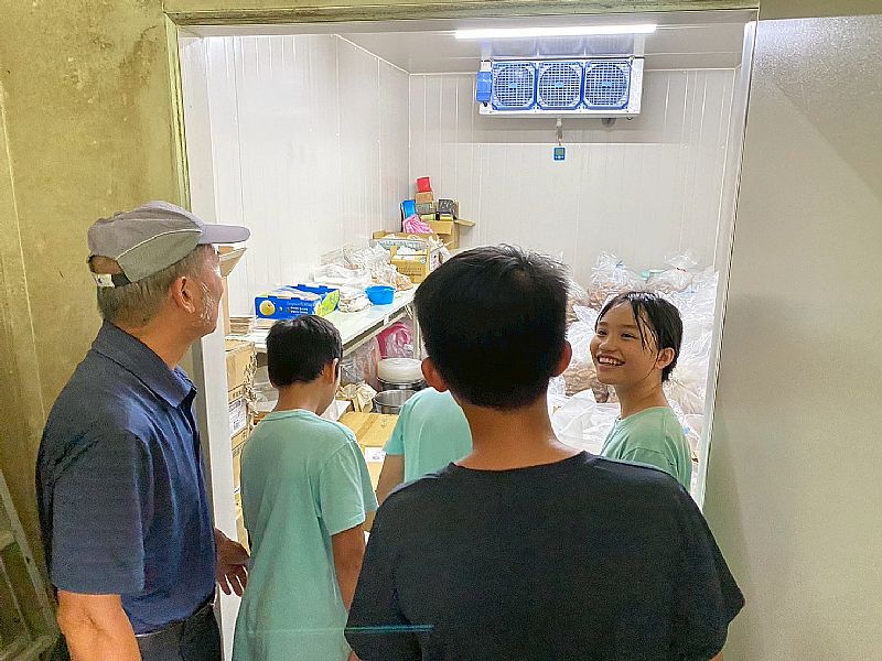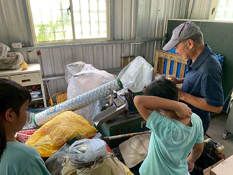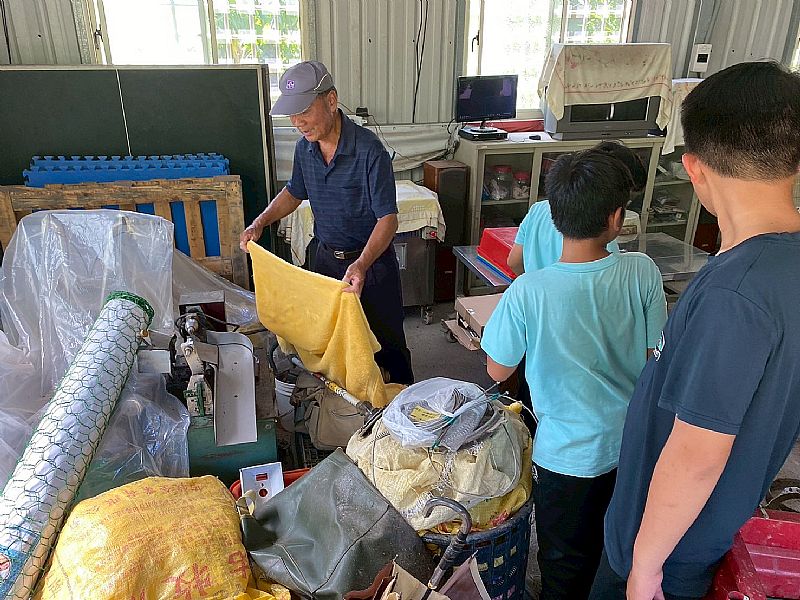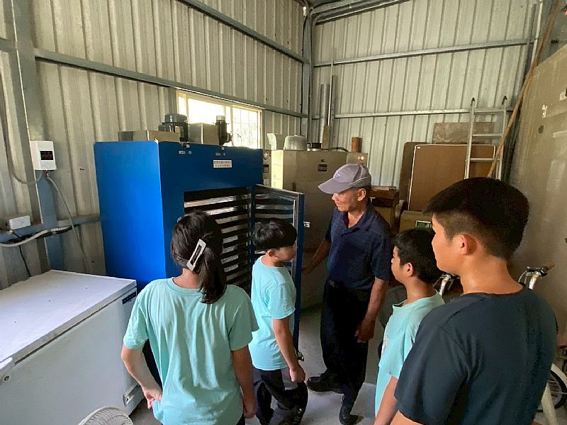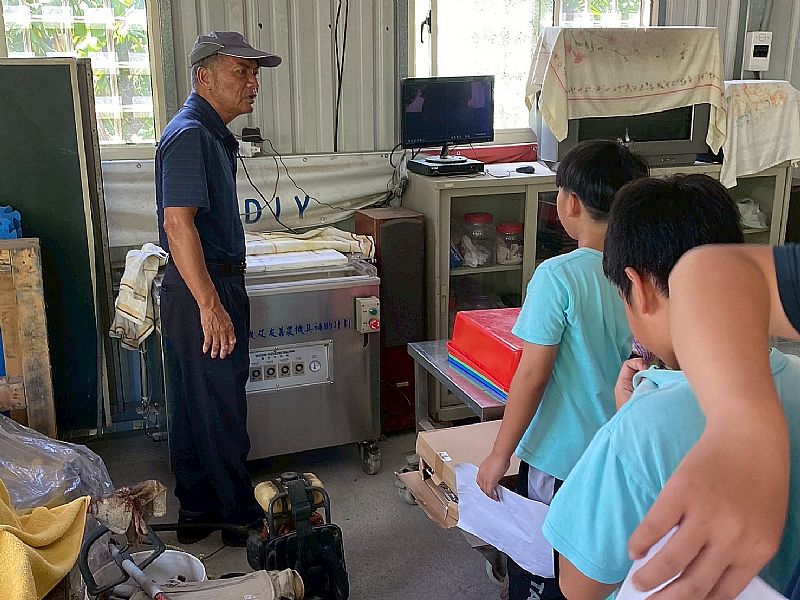 范伯伯介紹愛玉剝皮、烘乾、取籽、冷藏及真空包裝的器具,並且告訴我們光是取籽用機械跟人工時間就會相差20倍,其他的工具也能減少許多人力成本,並且維持產品的品質