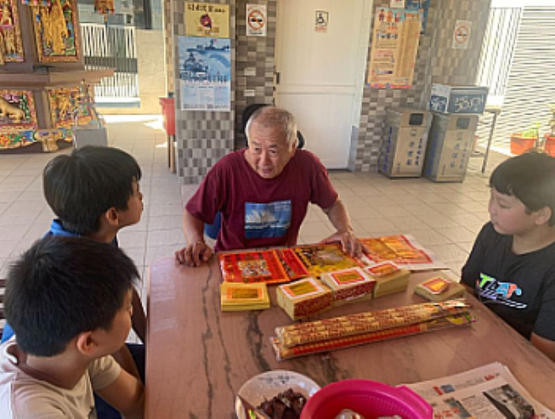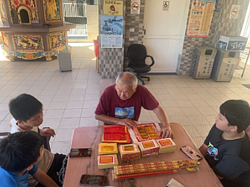 今天我們去了美崙福德廟,聽廟方人員李陳輝爺爺介紹現在美崙福德廟的減燒金紙的作法和環保局規定的不太一樣,福德廟的作法是將原本的金紙份量減少,達到環保的目的。另外,廟方有改用政府規定CNS標章的竹製紙錢,但目前以傳統金紙為主,因成本較高,廟方還要積極規劃中。