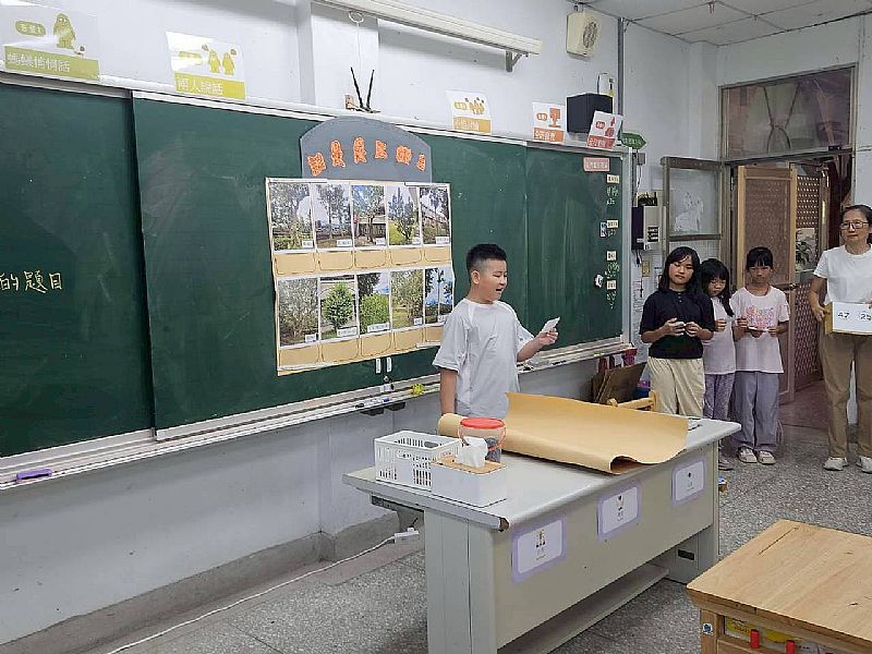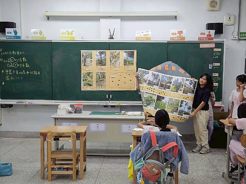 學員進入班級教室進行校園識樹的活動,收集問題來了解本校學生是否了解認識校園植物。