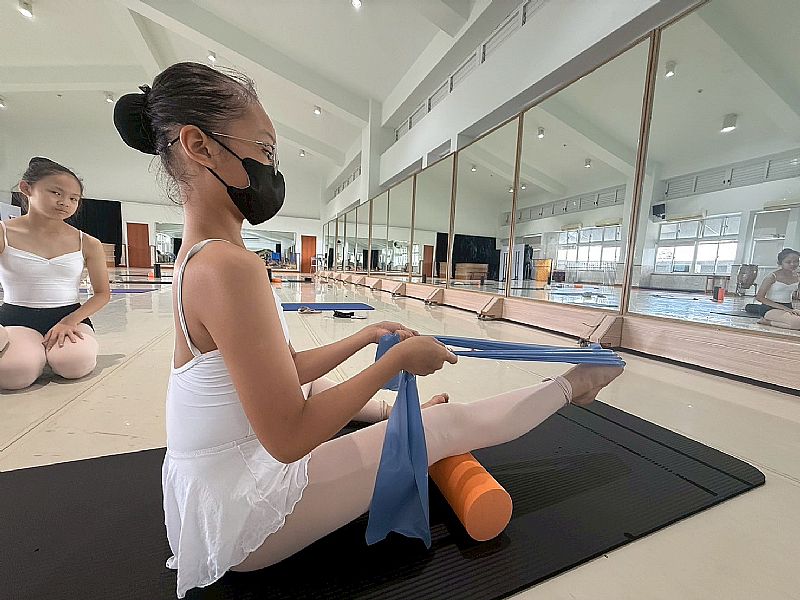 這些照片是我們在舞蹈課中做的一些動作,我們觀察到了有些同學在做動作時會有錯誤動作產生,像是有彈力帶的時候會內八,或是為了腿要用力而憋氣導致胸口和肩膀上提。
