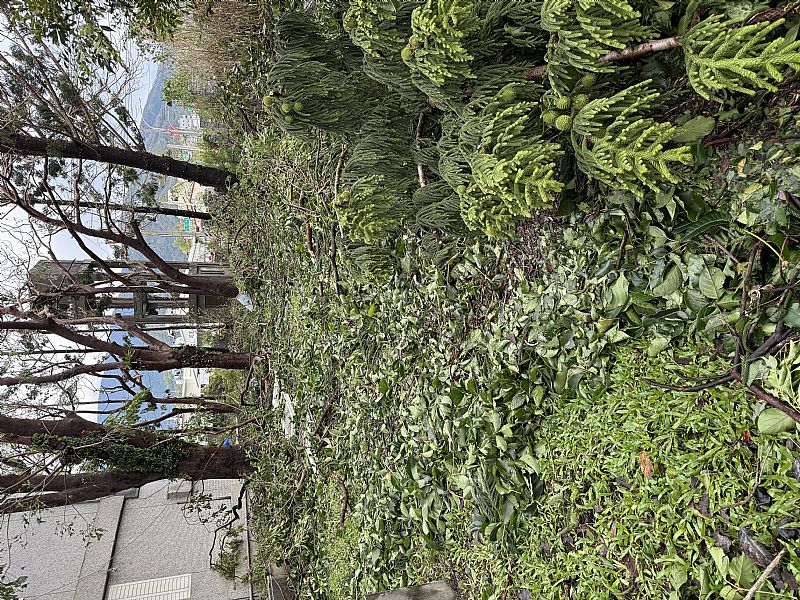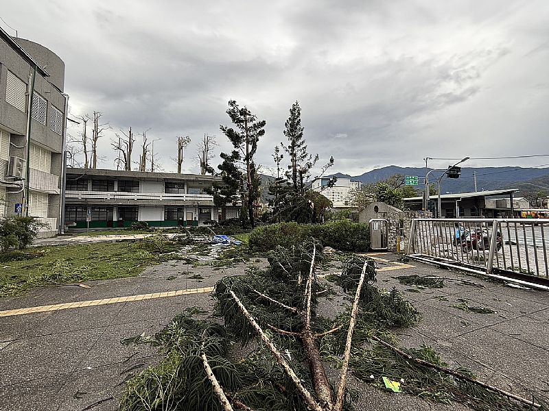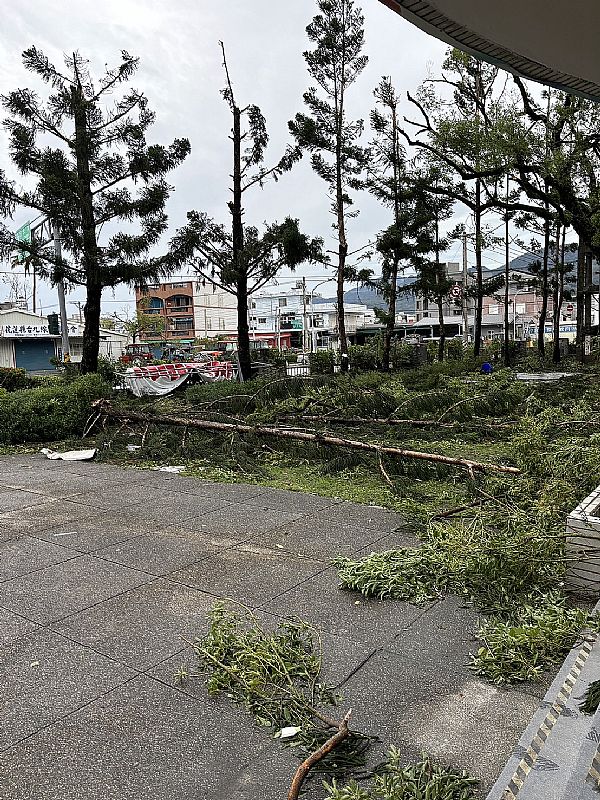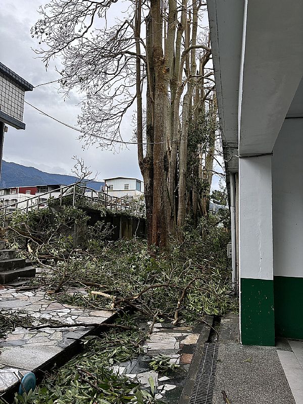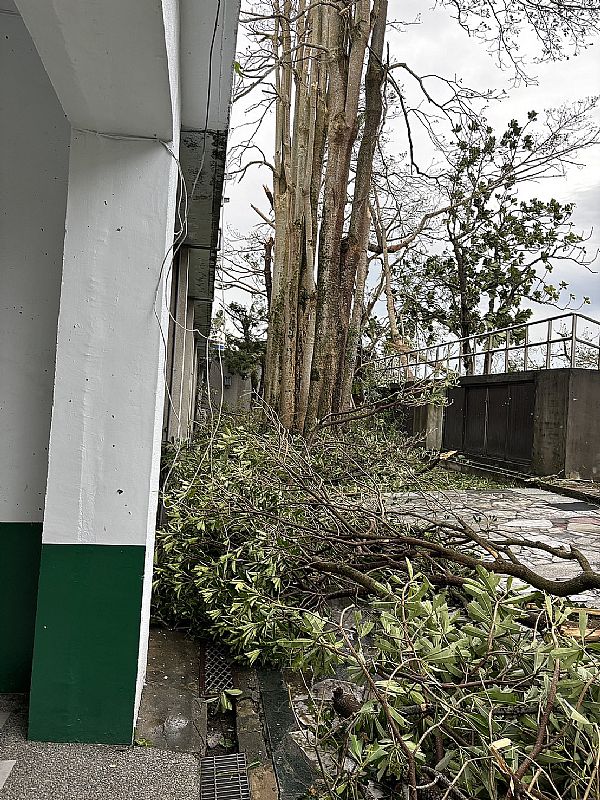 這是康芮颱風造成學校植物受損的照片,我們請總務處事務組楊子誼老師分享給我們,從照片中可以瞭解,颱風對於我們的校園植物帶來多嚴重的損害。