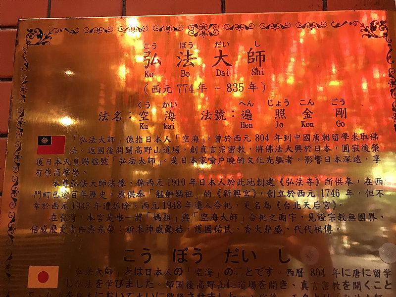 我們已經知道台灣惟二的弘法大師像,一尊在慶修院,另一尊就在台北天后宮。而且台北天后宮也是台北新四國遍路的起點。