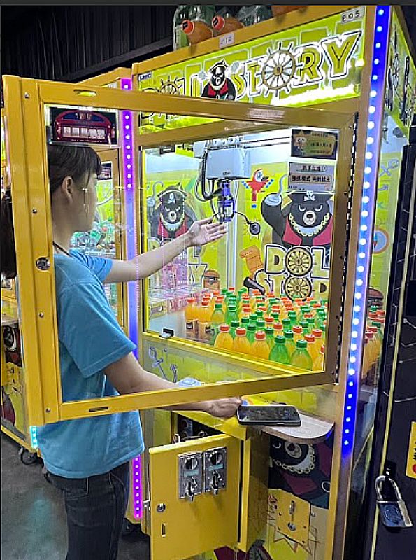 店員姊姊測試機台時,動作熟練,一下就把飲料夾出來了。雖然她說只是例行測試,不算夾道,但看著她輕鬆拿走飲料,我心裡還是有點不是滋味。畢竟我們前面投了那麼多次,眼看就快成功了,卻在她一動手後瞬間沒了機會。雖然知道她只是工作需要,但內心難免失落,覺得努力都白費了。有點小小不開心,但也只能默默接受現實,誰叫我們運氣差呢?希望下次能換我們順利夾到。