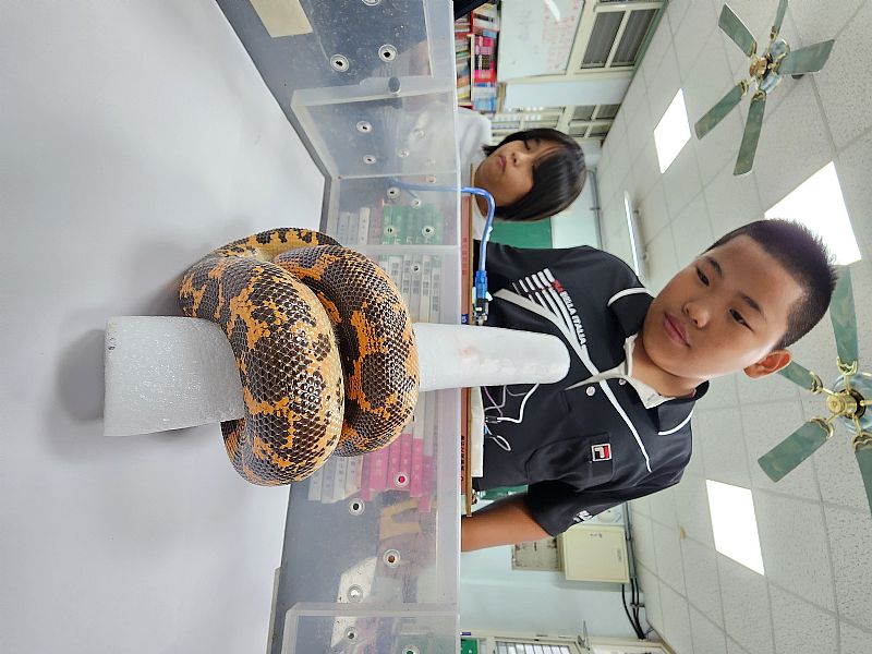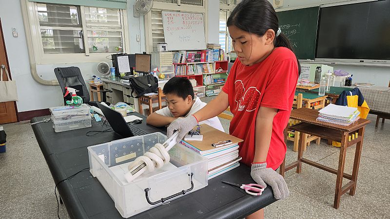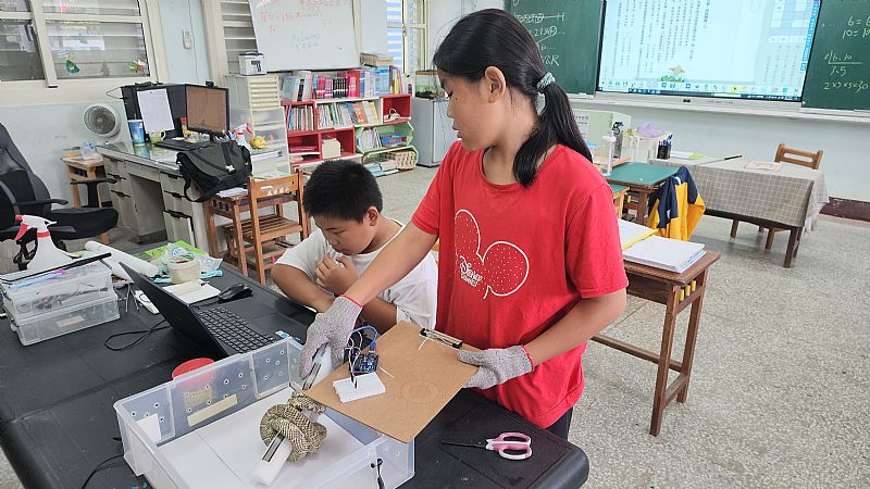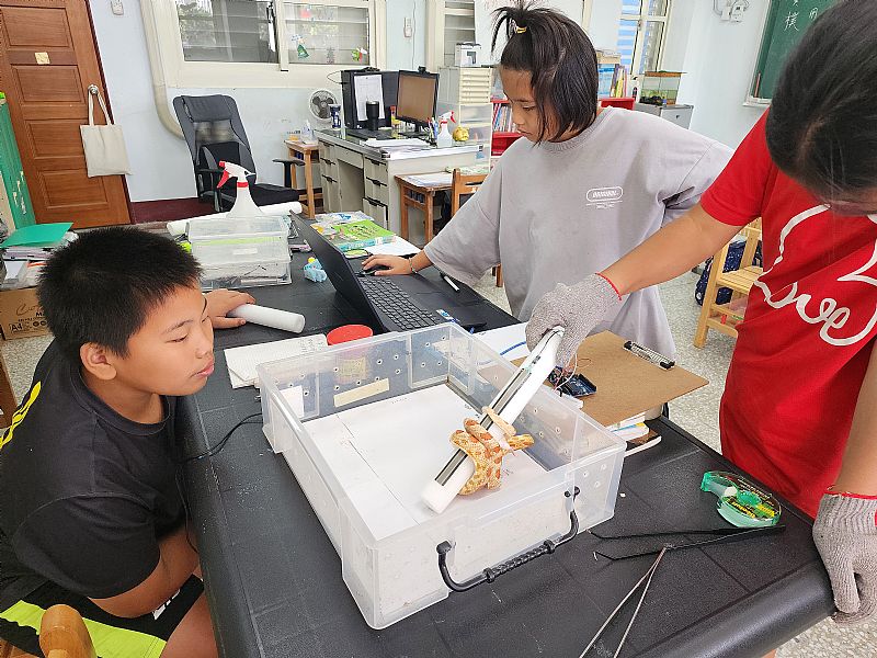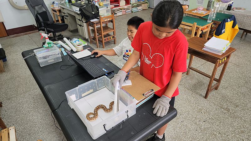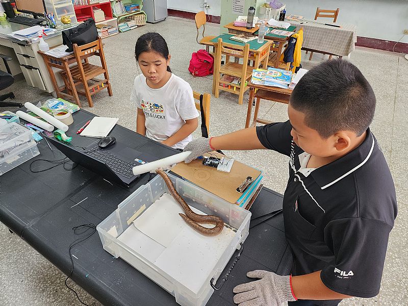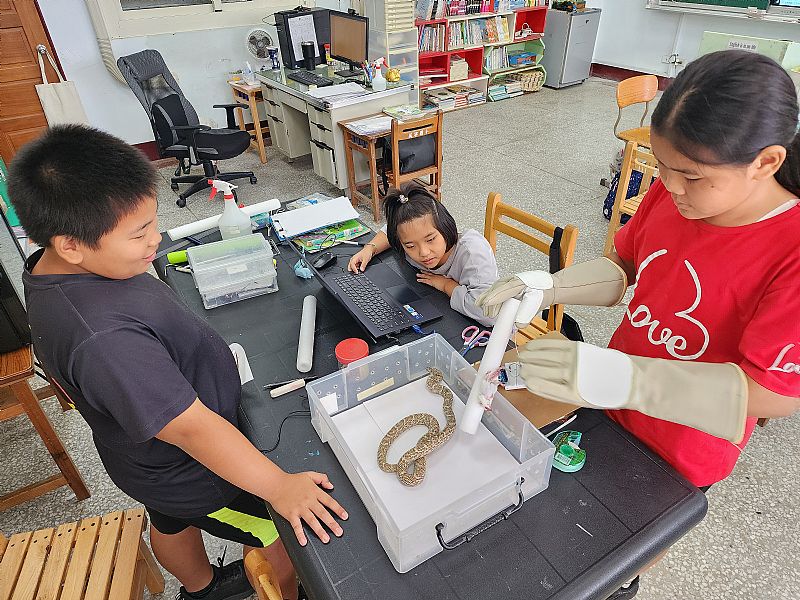 我們利用 Arduino 壓力感測器來測蛇的纏繞力,如果蛇纏得不完整,就必須重做。不同蛇的纏繞方式都不一樣,有的纏得緊密,有的交錯不整齊。還有,蛇的身體前端常因咬住獵物而懸空,導致部分力量無法被感測到,這也是我們實驗中需要克服的挑戰。