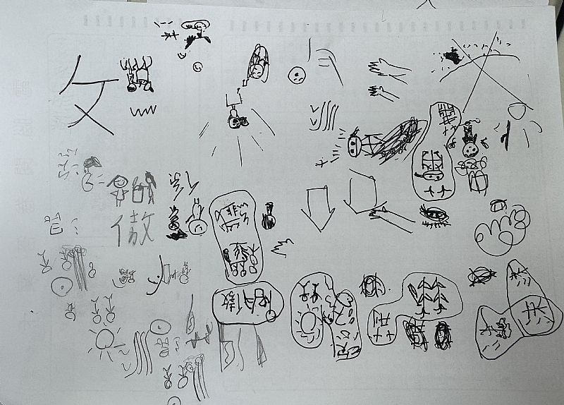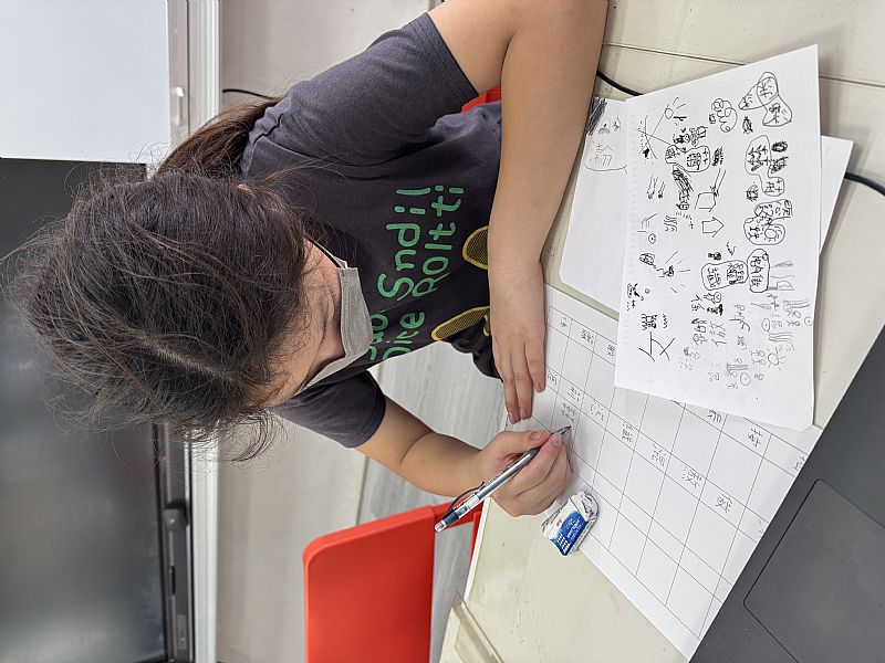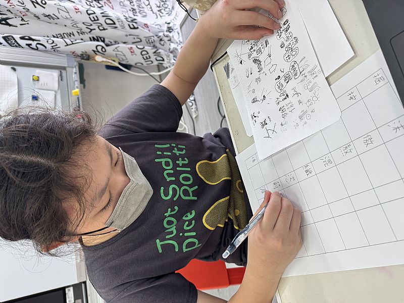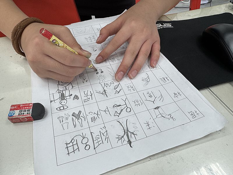 三、內容:我們畫好圖之後,會先跟老師一起討論要修改的地方,每個字都修改確認後,就將所有的圖畫到統整的表格上。