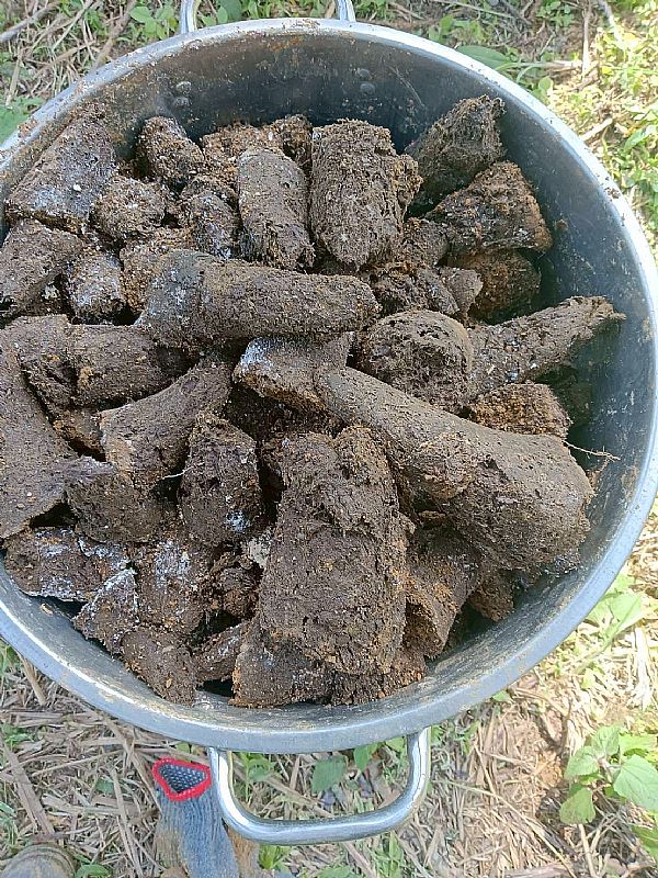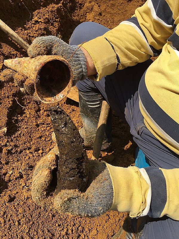 將埋藏及完成的配方牛角挖出