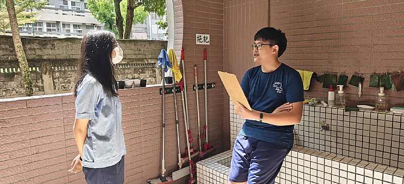 由於環境有些許聒噪因素,因此選在陽台進行和同學們的訪談,進行關於AI與未來在學習生涯中的應用等等問答。