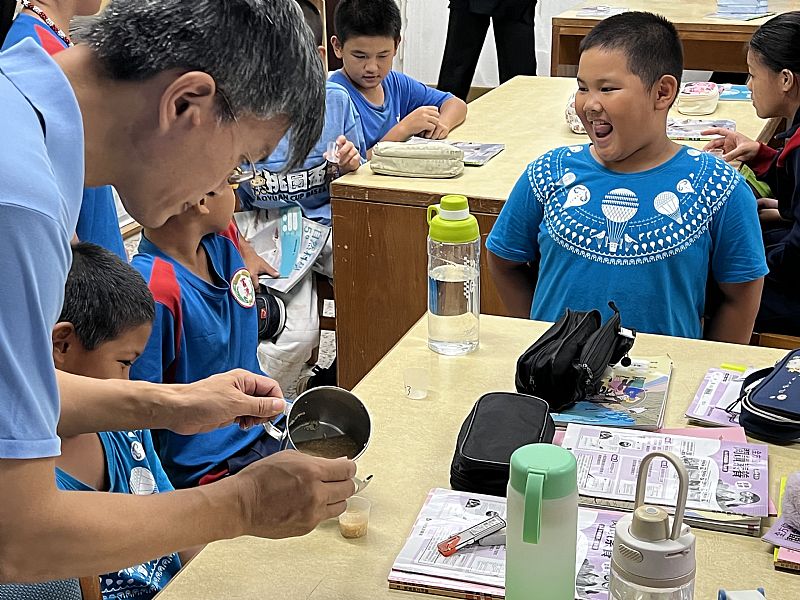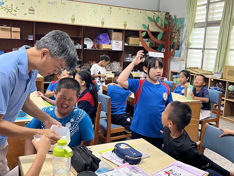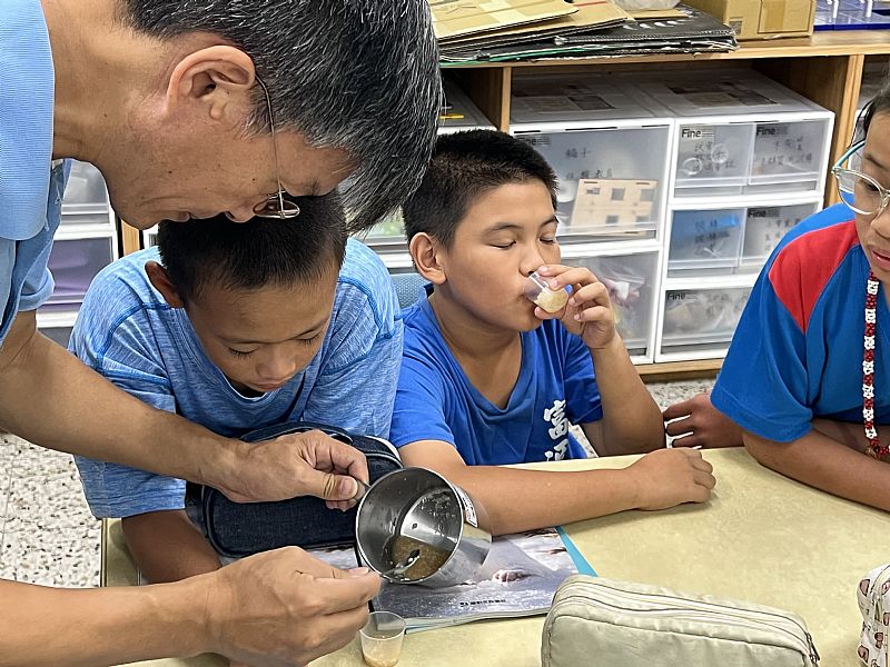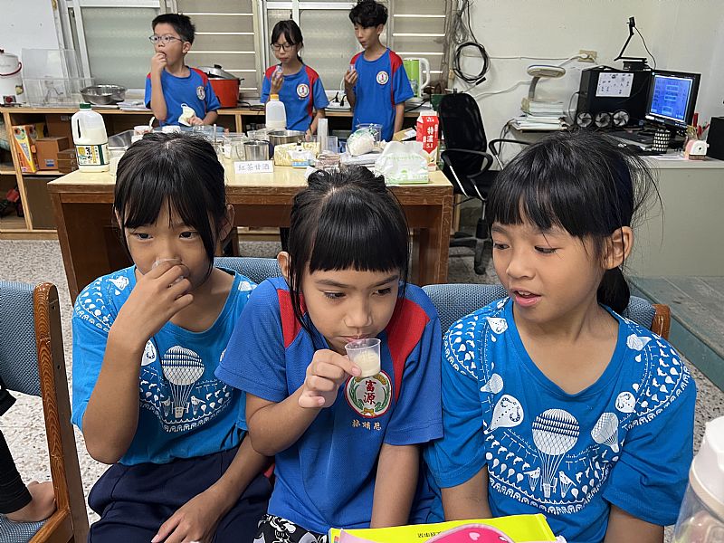 我們請3-6年級的學生試喝我們做的甘酒並評分