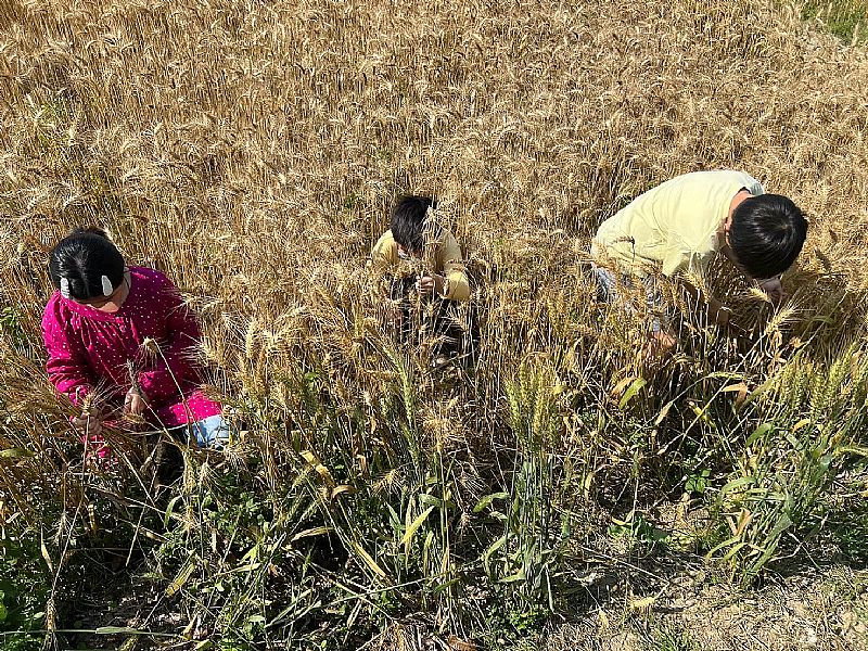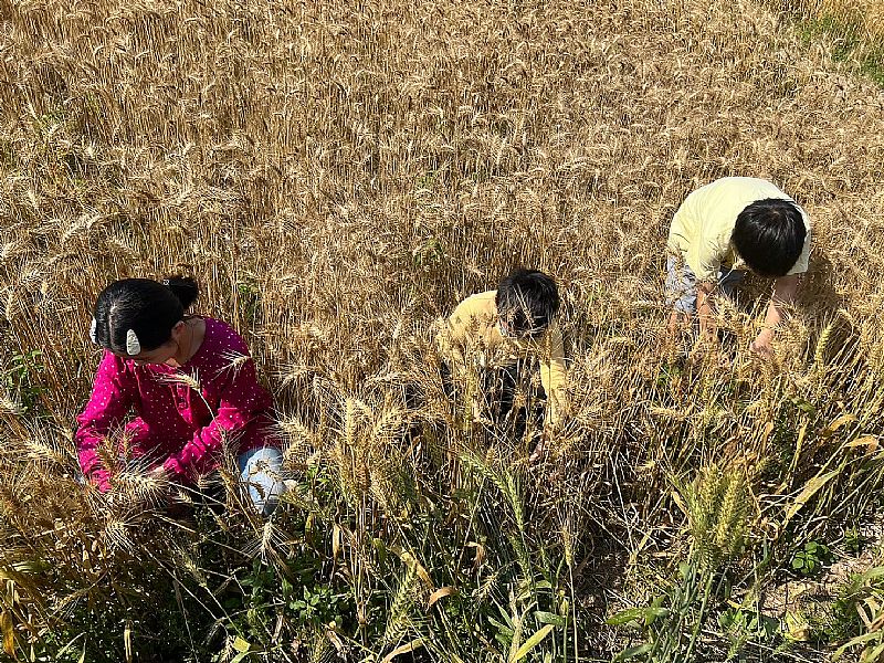 實際把麥子握在手上的感覺,有一種莫名的感動,我還記得那天的天氣有點涼,但因為出了太陽的關係、在田地裡幫忙,所以全身都暖呼呼的,一邊做事時一邊聊天,累了以後還可以喝好喝的麥茶!