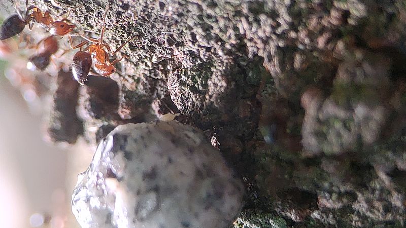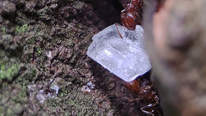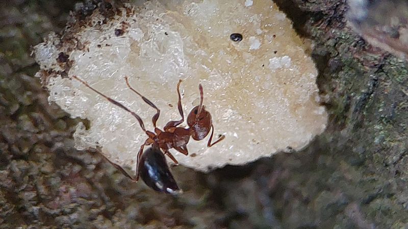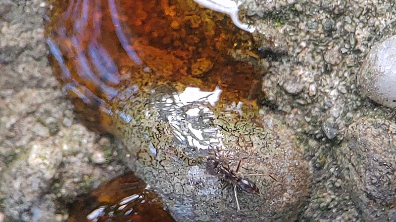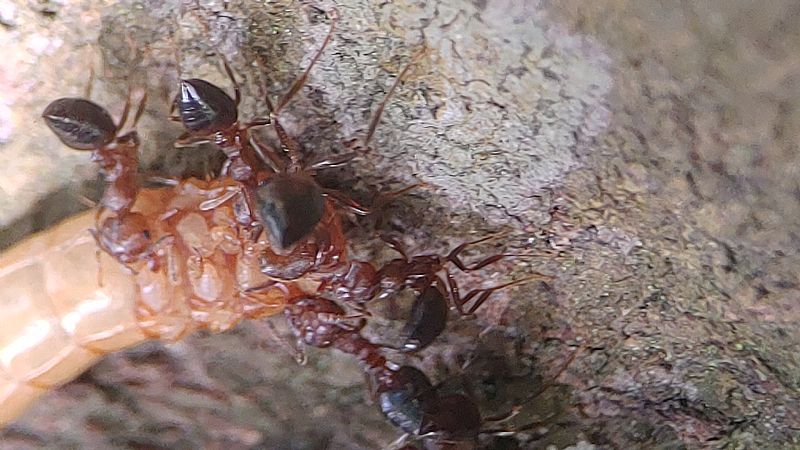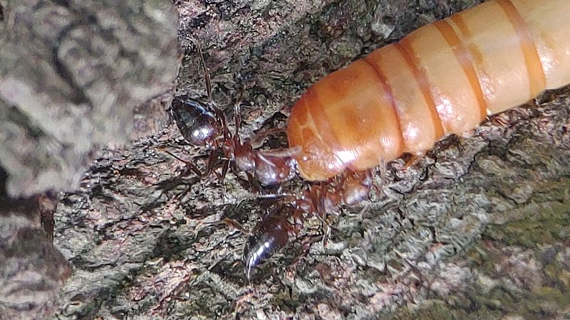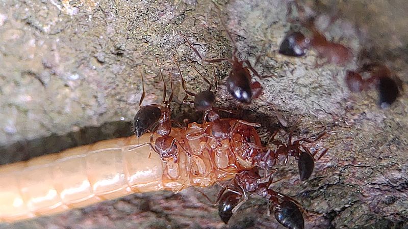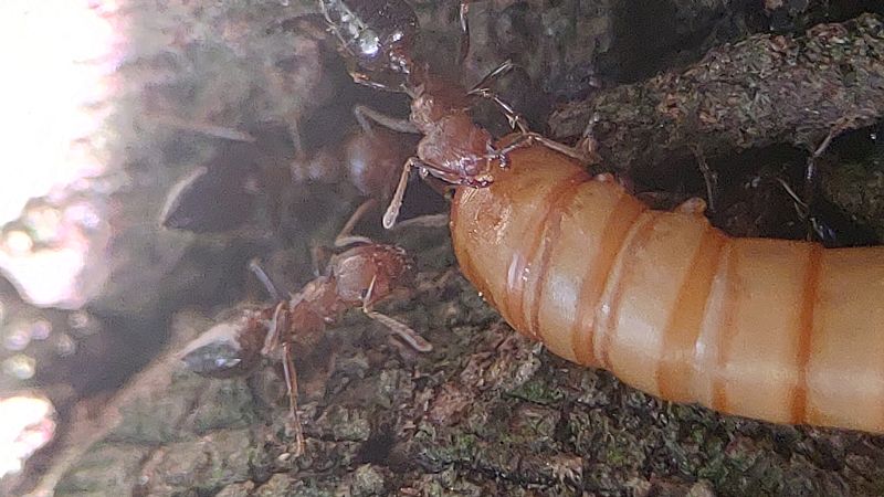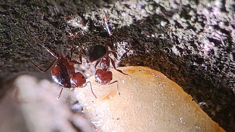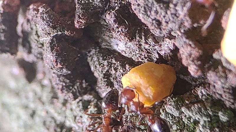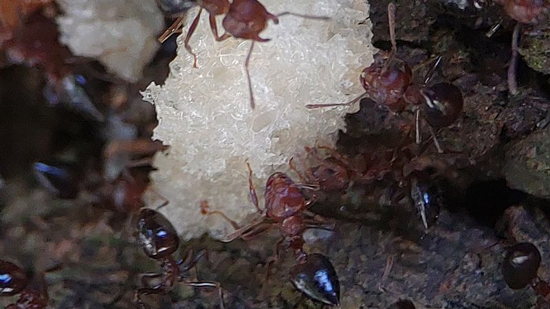 我們這次帶著蟑螂和餅乾等等,觀察舉尾蟻覓食的狀況,也測量了兩個蟻窩之間的距離,在過程中發現到舉尾蟻會在食物的地方先徘徊,覓食的時候不會帶回去,會在現場吃完。