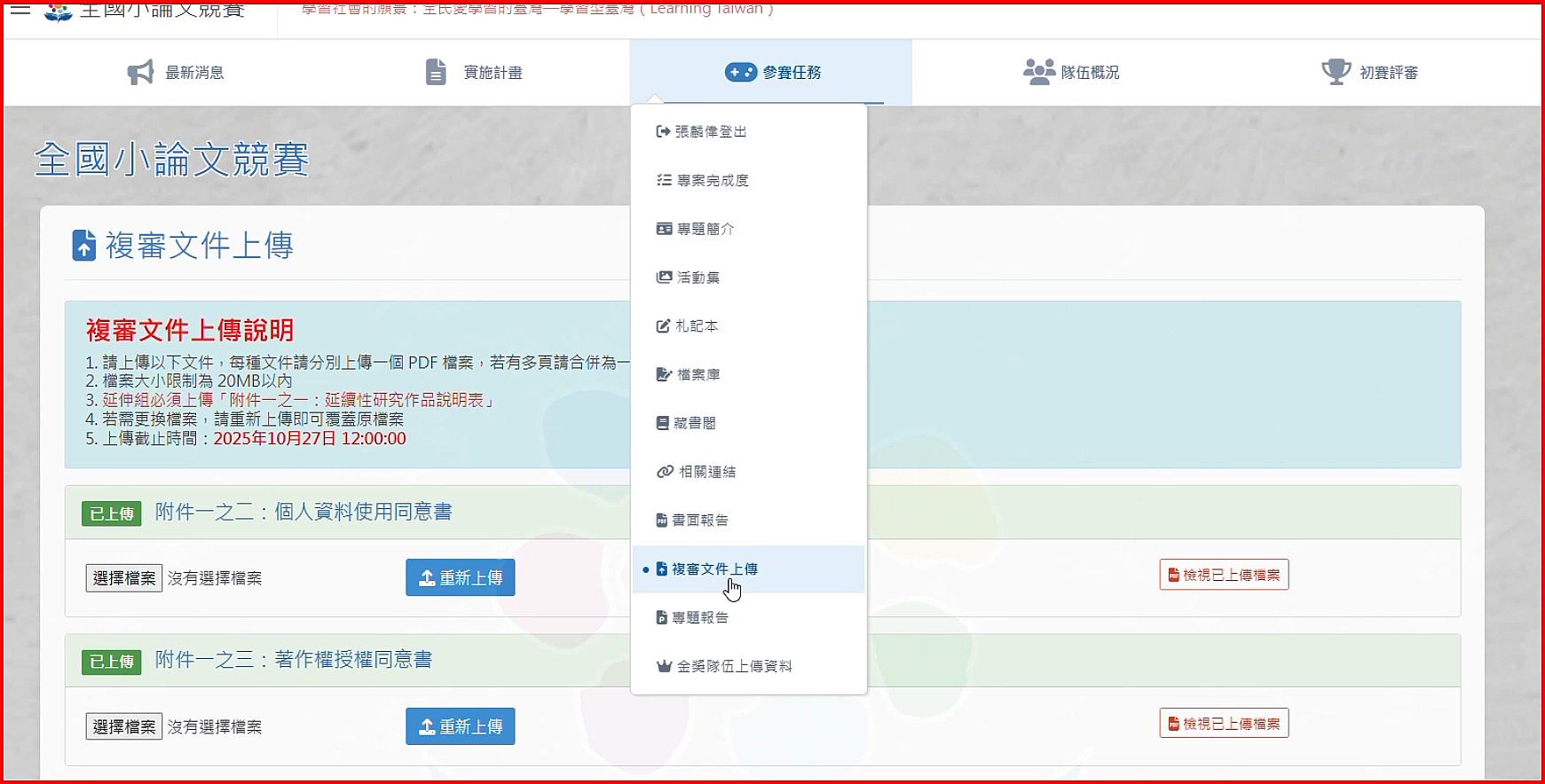 4.今年開始附件先上傳審核。複賽當天不用繳交附件紙本。