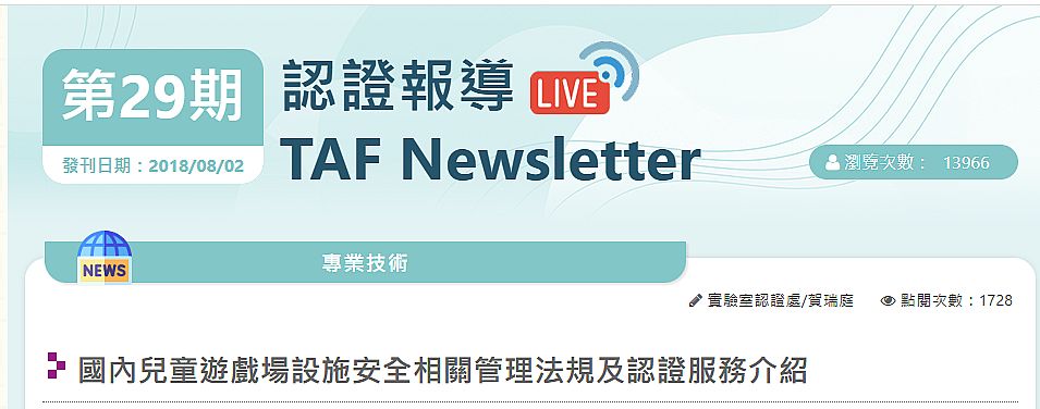 | 4 | ![]() | 作者 賀瑞庭 來源 https://www.taftw.org.tw/report/2018/29/children/ 描述 現今在公園、學校、幼稚園以及各種公共空間裡,幾乎都可以看到兒童遊戲場的設施,這些地方往往是小朋友們最喜歡去的遊樂天地。對於家長來說,看到孩子們在滑梯上快樂地滑下來、在搖搖馬上開心地晃動、在鞦韆上盪得高高的、在蹺蹺板上和同伴一起玩耍,或者在攀爬網上挑戰自我,確實是一件令人感到幸福的事。然而,這些設施是否真的足夠安全,卻是值得思考的問題。特別是當孩子們不小心跌倒或摔落時,遊戲場地面鋪設的材料是否能有效吸收衝擊、降低受傷的風險,對保障安全相當重要。因此,兒童遊具的設計不僅要兼顧趣味性,更需要符合安全標準,確保孩子能安心地在遊戲中探索與成長。 | 李中原 | 2025/9/17 下午 02:51:16 |