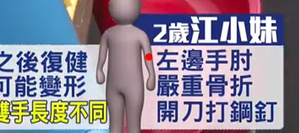 | 4 | ![]() | 網站名稱 YouTube 網址 https://www.youtube.com/watch?v=-jK5c_ot6og 網站簡介 新北市1名2歲江小妹妹,日前在三重區開元公園的兒童遊樂器材遊玩時,想爬上70公分高的平台去溜滑梯,手一滑就摔倒,設施又沒有鋪設軟墊,導致她左邊手肘,嚴重骨折,必須打鋼釘固定,之後還得做復健,讓家長很心疼 | 蔣昊錞 | 2025/9/17 下午 01:34:46 |
