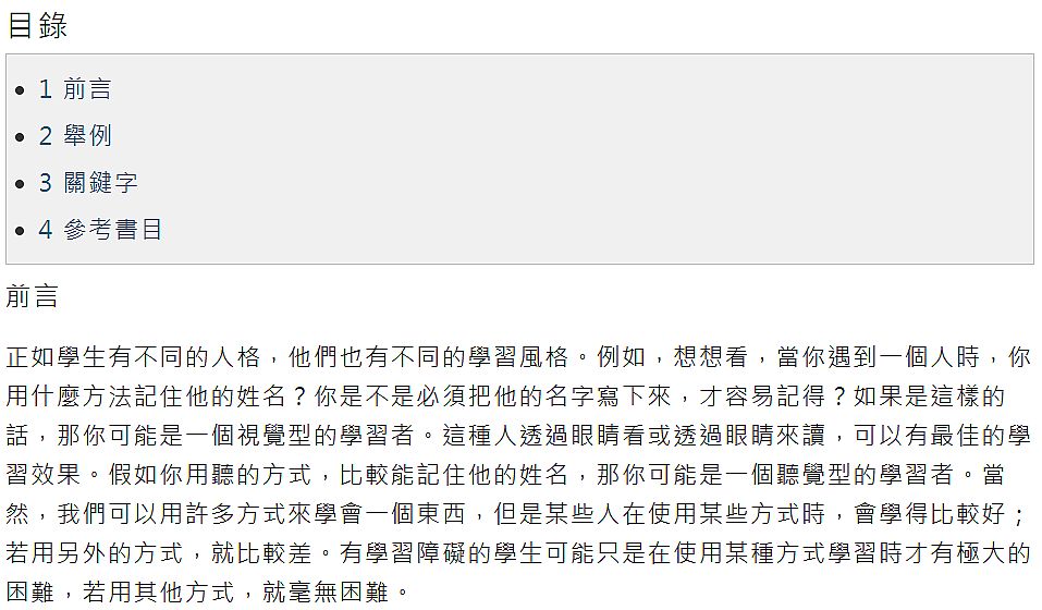 | 4 | ![]() | 網站名稱 學習風格的理論 網址 https://pedia.cloud.edu.tw/Entry/WikiContent?title=%E5%AD%B8%E7%BF%92%E9%A2%A8%E6%A0%BC%E7%9A%84%E7%90%86%E8%AB%96&search=%E5%AD%B8%E7%BF%92%E9%A2%A8%E6%A0%BC%E7%9A%84%E7%90%86%E8%AB%96 網站簡介 教育百科是由中華民國教育部建置,為整合各類辭典資源的教育雲端字典服務,包含國語辭典、成語典、閩南語、客語等內容,並支援文字、語音及圖識字等查詢方式,提供逾40萬筆詞條,使用者可在網頁或App上使用。 | 游惟勛 | 2025/9/22 下午 04:33:52 |
