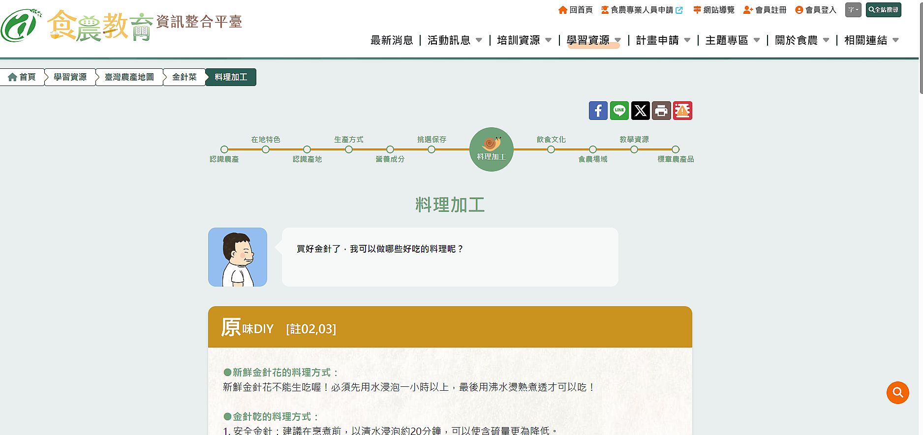 | 4 | ![]() | 網站名稱 食農教育資訊整合平台 網址 https://fae.moa.gov.tw/index.php 網站簡介 與食農相關知識學習,關於農作物或農產品的介紹 | 賴紫萱 | 2025/9/16 下午 01:13:58 |