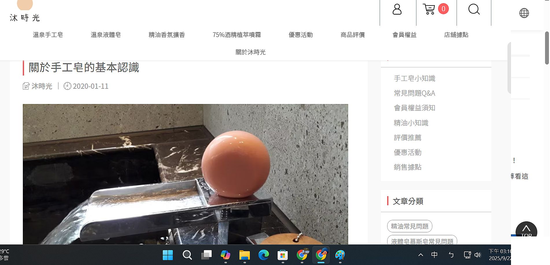 | 1 | ![]() | 網站名稱 香草工房 網址 https://www.soapmaker.com.tw/ 網站簡介 這是台灣一間知名的手工皂材料供應商。我們可以在這個網站上找到各種製作手工皂需要的材料,例如:皂基、精油、色粉、模具等,是我們專題製作時的重要資源。 | 張能碩 | 2025/9/22 下午 02:36:33 |