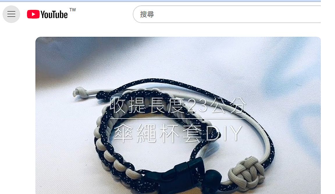 | 1 | ![]() | 網站名稱 DIY傘繩隨行杯套第一種編法 網址 https://www.youtube.com/watch?v=rWdMuvflVUk 網站簡介 傘繩提把配件包DIY Kits-手環手提杯材料包 | 曾愷恩 | 2025/9/22 下午 04:32:08 |