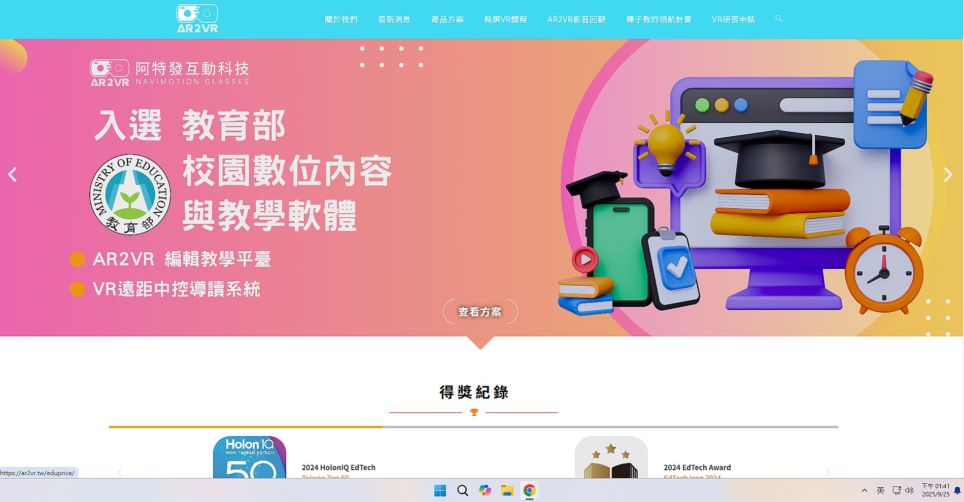 | 2 | ![]() | 網站名稱 AR2VR 全國共享課程平台 網址 https://ar2vr.tw/?utm_source=chatgpt.com 網站簡介 AR2VR 全國共享課程平台 是一個專為教育設計的虛擬實境(VR)與擴增實境(AR)課程共享平台。其核心理念是「不用寫程式,人人都能做 VR」,讓教師與學生可以像製作簡報一樣,輕鬆完成 VR 課程設計與體驗。平台內建簡單易用的創課工具,支援 360 度影像、互動場景與多媒體素材整合,降低了技術門檻。 使用者可以將自己設計的課程上架,並開放全國教師共同使用,實現資源共享。平台目前已累積上百門課程,涵蓋自然科學、人文歷史、藝術、校園導覽等領域,並附有教案與學習單,可直接應用於課堂教學。此外,AR2VR 也積極推動教師研習與教學培訓,協助教育工作者快速掌握 VR 教學應用。 這個平台的特色是結合教育專業與科技創新,讓 VR 教學真正走入校園,提升學生的學習動機與沉浸式體驗,並促進教學資源的共享與永續發展。 | 曾惟謙 | 2025/9/25 下午 01:42:26 |
