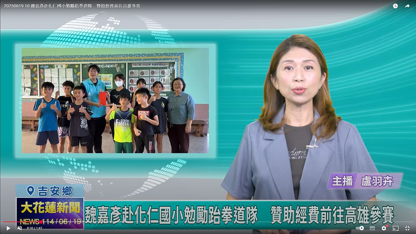 | 1 | ![]() | 網站名稱 洄瀾有線電視 網址 https://youtu.be/UNXnq5yHvVo 網站簡介 魏嘉彥赴化仁國小勉勵跆拳道隊 贊助經費前往高雄參賽 | 陳芷琳 | 2025/9/12 下午 04:05:32 |