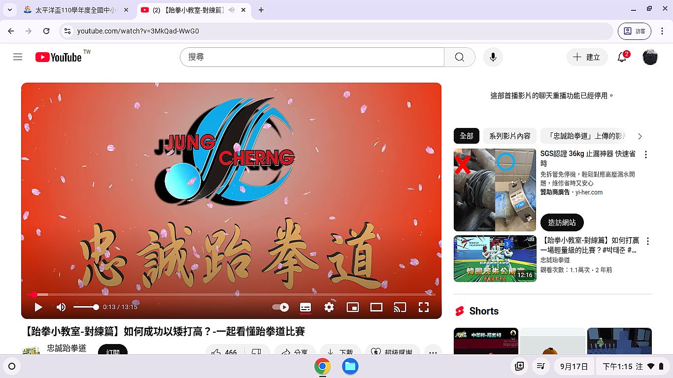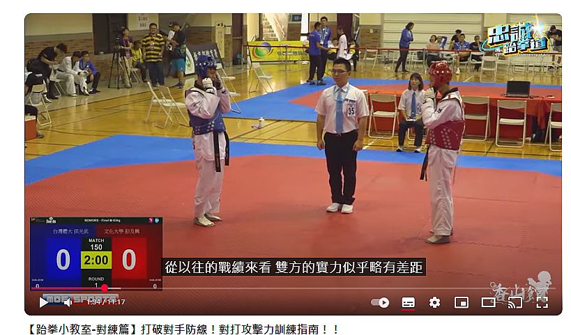 | 4 | ![]() | 網站名稱 跆拳小教室對練篇如何成功以矮打高 網址 https://www.youtube.com/watch?v=3MkQad-WwG0 網站簡介 透過比賽影片,指導學員如何以矮打高的攻擊技巧與訣竅 | 林凱樂 | 2025/9/17 下午 01:19:27 |