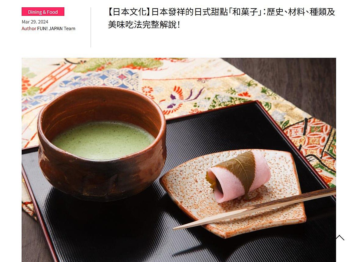 | 1 | ![]() | 網站名稱 【日本文化】日本發祥的日式甜點「和菓子」:歷史、材料、種類及美味吃法完整解說! 網址 https://www.specialoffers.jcb/zh-tw/tips/japan/dining-food/wagashi/ 網站簡介 據說和菓子誕生於數千年前的繩文時代,最早出現的和菓子為麻糬。古代人將樹果乾燥保存,或研磨成粉末去除苦味,再將其加熱成糰狀,製作出麻糬。約西元934年的古書記載,當中亦有提到關於麻糬的描述,麻糬當時採用高貴的米,是製作來貢獻給神明的供品,因此被視為極為神聖的食物。而上述就是被稱為日本最古老的加工食品「麻糬」誕生之說。 其後,和菓子受到茶道文化發展與唐朝交流接觸等影響,其製作方法和技術日益進化。隨著時代變遷,使用的材料變得多元,再加上加工技術亦不斷提升,因而誕生高品質且外觀賞心悅目的和菓子。 正如甜美的西式甜點搭配苦澀的咖啡,巧克力搭配威士忌或紅酒,和菓子也有適合搭配的飲品組合,各個種類搭配的茶品皆不同。甜度高、口感黏膩的生菓子,適合搭配味道濃郁的日本茶。特別是抹茶和高雅的玉露綠茶,是最適合不過了!而對於帶有醬油香氣的仙貝煎餅或烘焙點心,推薦搭配香氣濃郁、口感層次豐厚的番茶! 如果是萩餅或大福等口感紮實的麻糬類和菓子,清爽的焙茶、略為苦澀的錫蘭茶或阿薩姆茶,是相當不錯的選擇。 | 高子甯 | 2025/7/18 下午 08:27:11 |