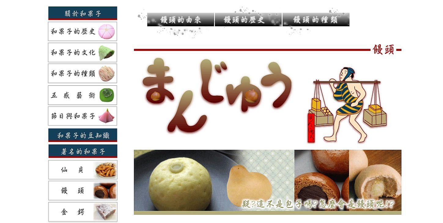 | 4 | ![]() | 網站名稱 和菓子傳奇 網址 https://www.saints-united.com/wagashi/art.html 網站簡介 日本的饅頭,大約就等於是華人所說的包子,但是包含的範圍又更廣泛了。 饅頭就是在麵皮裏面包餡的一種點心,那為什麼會稱為饅頭呢? 饅頭的種類, 以麵皮來分,大約可分為下列幾種饅頭: 茶饅頭:以小麥粉、黑砂糖、膨鬆劑揉成的皮包餡做成的饅頭。像大島饅頭、溫泉饅頭、利休饅頭、薄皮饅頭都算是茶饅頭,在觀光地(特別是溫泉街)很受到觀迎哦! 薯蕷(上用)饅頭:用山芋、薯蕷粉、上新粉作成的皮包餡去蒸的饅頭。所使用的山芋有京都地方的山芋、關東地方的大和芋、中部地方的伊勢芋等,在茶會中常會作為主要果子的一種來使用。傳說是奈良時代的林淨因所發明的,所以以其子孫所開的果子屋店名命名,又稱為「鹽瀨饅頭」。 酒饅頭:以酒母(將酒種、麴以酵母繁殖的東西)將小麥粉作成的皮發酵,包入餡料的饅頭。又稱為「虎屋饅頭」。酒饅頭在長野市、新潟縣長岡市有像紅豆麵包形狀的,在福井縣三國的形狀是扁平有燒印的,而岐 阜縣大垣市的則是像茶饅頭的外形,所以,根據地方不同,形狀、味覺、製法也會有所不同哦! 燒饅頭:主要為蛋糕口感的外皮包餡的一種燒果子,唐饅頭、紅葉饅頭、栗饅頭、千鳥饅頭(福岡縣)都是屬於燒饅頭。明治時代以後受到洋果子及中華果子(月餅)的影響而蓬勃發展,工具有烤箱或鐵板等。 栗饅頭:在皮上塗一層蛋黃去烤,像栗皮的顏色,中間的餡是白豆餡,並加入甜味的栗子、蜜相混合。 水(葛)饅頭:使用葛粉作成透明的皮包餡的夏季生果子,又可稱為「水仙饅頭」。一般是放在果子盤中吃,也有浸泡在水中再吃的,稱為「水饅頭」是岐阜縣大垣市的名物,在日本國內一般稱為「葛饅頭」 麩饅頭:以生麩取代小麥粉包餡的生果子,常以綠葉包裹,是一種低卡洛里好消化的健康饅頭哦! 味噌饅頭:小麥粉加入味噌調味去蒸的饅頭,餡料的甜味加上味噌的味道,竟有一種特別的口感哦! | 陳昱翰 | 2025/7/18 下午 08:44:41 |