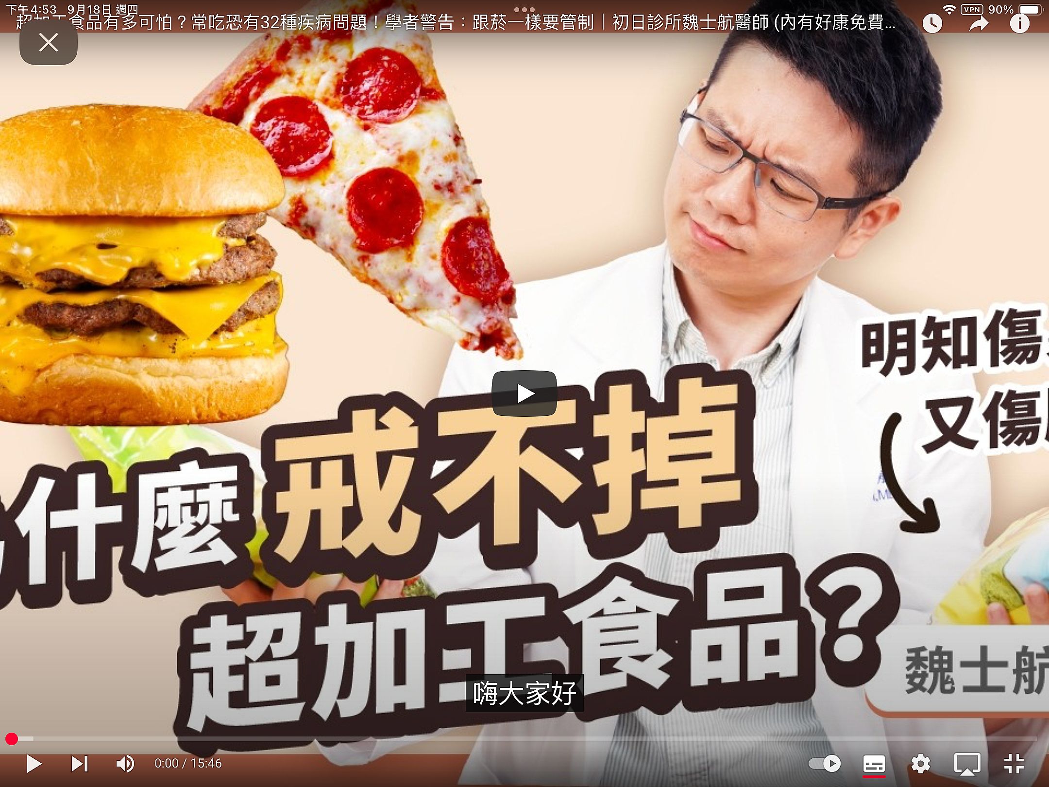 | 3 | ![]() | 網站名稱 初日醫學 - 宋晏仁醫師 x Cofit 網址 https://youtu.be/d2M-Nn7RVBk 網站簡介 這是一個關於健康飲食的影片,魏試航醫師介紹了什麼是超加工食品,超加工食就是加工超過2次的食品。吃太多超加工食品可能導致心血管疾病、心理疾病、代謝相關疾病。 我們學校的學生早餐也常吃熱狗雞塊等超加工食品,有可能會讓身體健康造成負擔。 | 溫翔宇 | 2025/9/18 下午 04:53:25 |