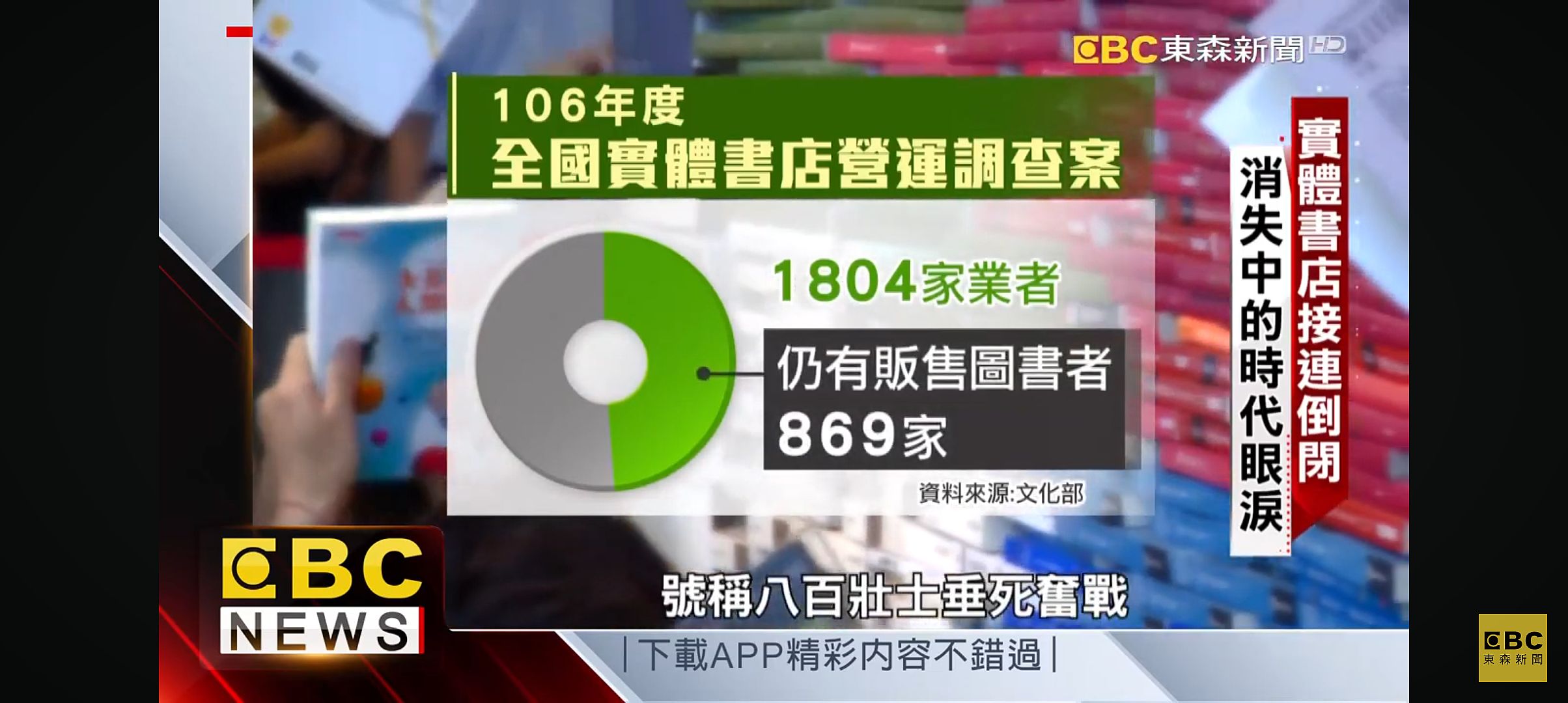 | 1 | ![]() | 網站名稱 網路浪潮衝擊全世界 倒閉潮如骨牌效應【聚焦真相】東森新聞CH51 網址 https://youtu.be/OlUuLZHIrWI?si=oqRorIe7IcUvwtso 網站簡介 這段影片從新聞節目深入探討因為網路時代的崛起,實體書店面臨的衝擊,導致一間接一間關門的「倒閉潮」。在其中,舉例了幾家曾風靡臺灣,如今逐漸消失的實體書店,例:金石堂書店曾在臺有102間分店,如今僅剩35間;新學友書店曾在臺有45間分店,但近期宣布破產,如今轉型版權授權業。專家在影片中強調,書籍不僅是商品,更承載文化傳承的使命,呼籲社會與政策不該忽視實體書店的文化價值。 | 陳彥安 | 2025/8/26 下午 03:39:05 |