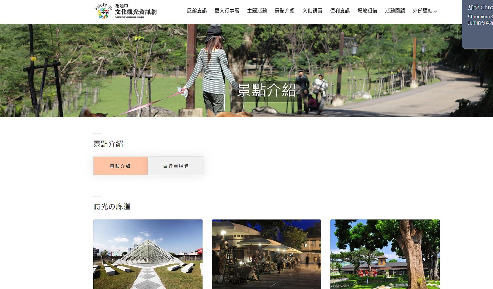 | 2 | ![]() | 網站名稱 花蓮市觀光資訊網 網址 https://culture-tourism.hualien.gov.tw/attraction.php 網站簡介 介紹花蓮觀光景點以及租約地方 | 蕭巧惇 | 2025/7/23 下午 03:02:31 |
