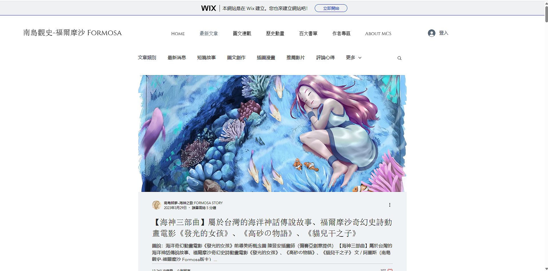 | 4 | ![]() | 網站名稱 WIX 網址 https://siow3033.wixsite.com/austronesiaformosa/post/%E2%80%A6 網站簡介 成立於2017年8月間,主要致力於原創動畫企劃、製片與宣發,專注於故事開發、IP孵化、整合行銷,以「臺灣印象與南島文化」為創作核心理念,開發高品質且富內涵的長篇動畫與文化內容商品為目標,開創專屬「福爾摩沙系列」原創品牌 IP。歷年參與開發過多部原創動畫短片:例如《大頭仔的三塊厝》、《鯉魚祭》、《餓男專賣電》、《阿三綜藝團》、《豆油瓶》等。 | 林郁庭 | 2025/7/23 下午 03:39:12 |