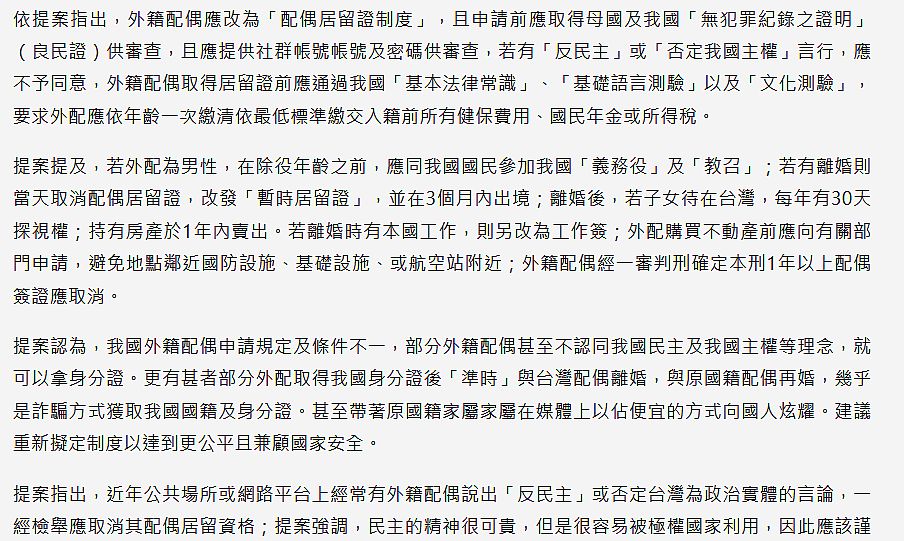 | 5 | ![]() | 網站名稱 反人權提案? 民眾竟提案「外配入籍前提供社群帳號帳號及密碼供審查」 網址 https://www.ctee.com.tw/news/20250330700198-431401 網站簡介 外配的居留證獲取制度 | 李凱堯 | 2025/7/23 下午 03:49:34 |