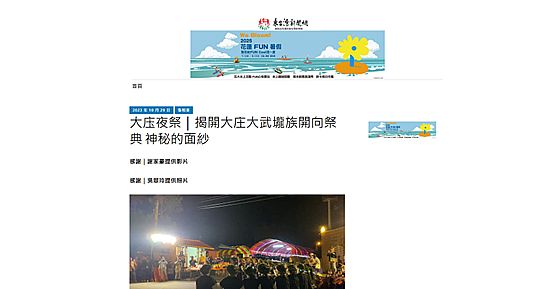 | 專題名稱 | 大庄夜祭—東部地區唯一的西拉雅族祭儀 |